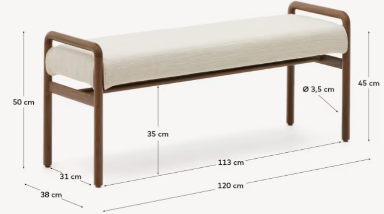 Die mit Chenille bezogene Sitzfläche verleiht dem Möbelstück Struktur und optische Wärme. Der abnehmbare Kordelbezug ermöglicht eine einfache Reinigung, und die 30 kg/m³ Schaumstofffüllung garantiert Komfort. Dank der Verwendung von zertifiziertem FSC Mix Credit-Holz ist die Macaret -Bank nicht nur elegant, sondern auch eine verantwortungsvolle Wahl für Innenräume, in denen Qualität und Umweltschutz eine wichtige Rolle spielen.