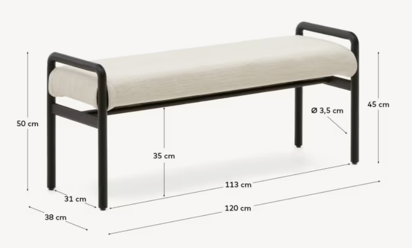 Die mit Chenille bezogene Sitzfläche verleiht dem Möbelstück Struktur und optische Wärme. Der abnehmbare Kordelbezug ermöglicht eine einfache Reinigung, und die 30 kg/m³ Schaumstofffüllung garantiert Komfort. Dank der Verwendung von zertifiziertem FSC Mix Credit-Holz ist die Macaret -Bank nicht nur elegant, sondern auch eine verantwortungsvolle Wahl für Innenräume, in denen Qualität und Umweltschutz eine wichtige Rolle spielen.