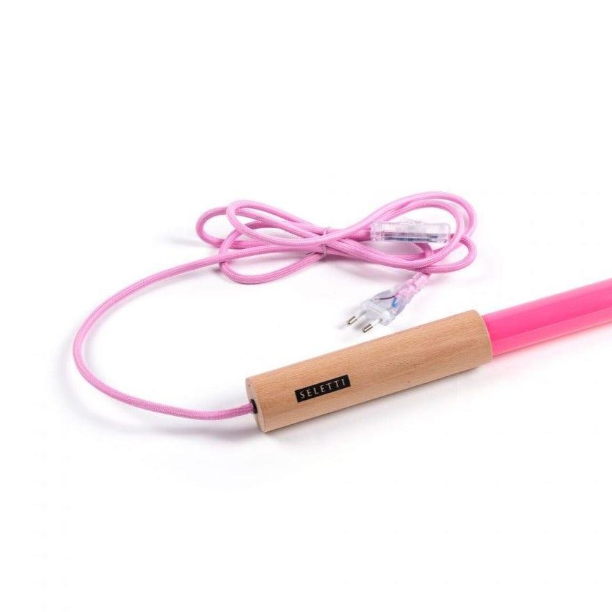 Linea zu Designerlampe, dessen Neon, rosa Farbe jeden Innenraum beleuchten. Das minimalistische Design und die interessanten Details, wie der Griff, der es ermöglicht, es an der Wand oder Decke aufzuhängen, führt eine kleine Avant -Gärte in den Raum ein.