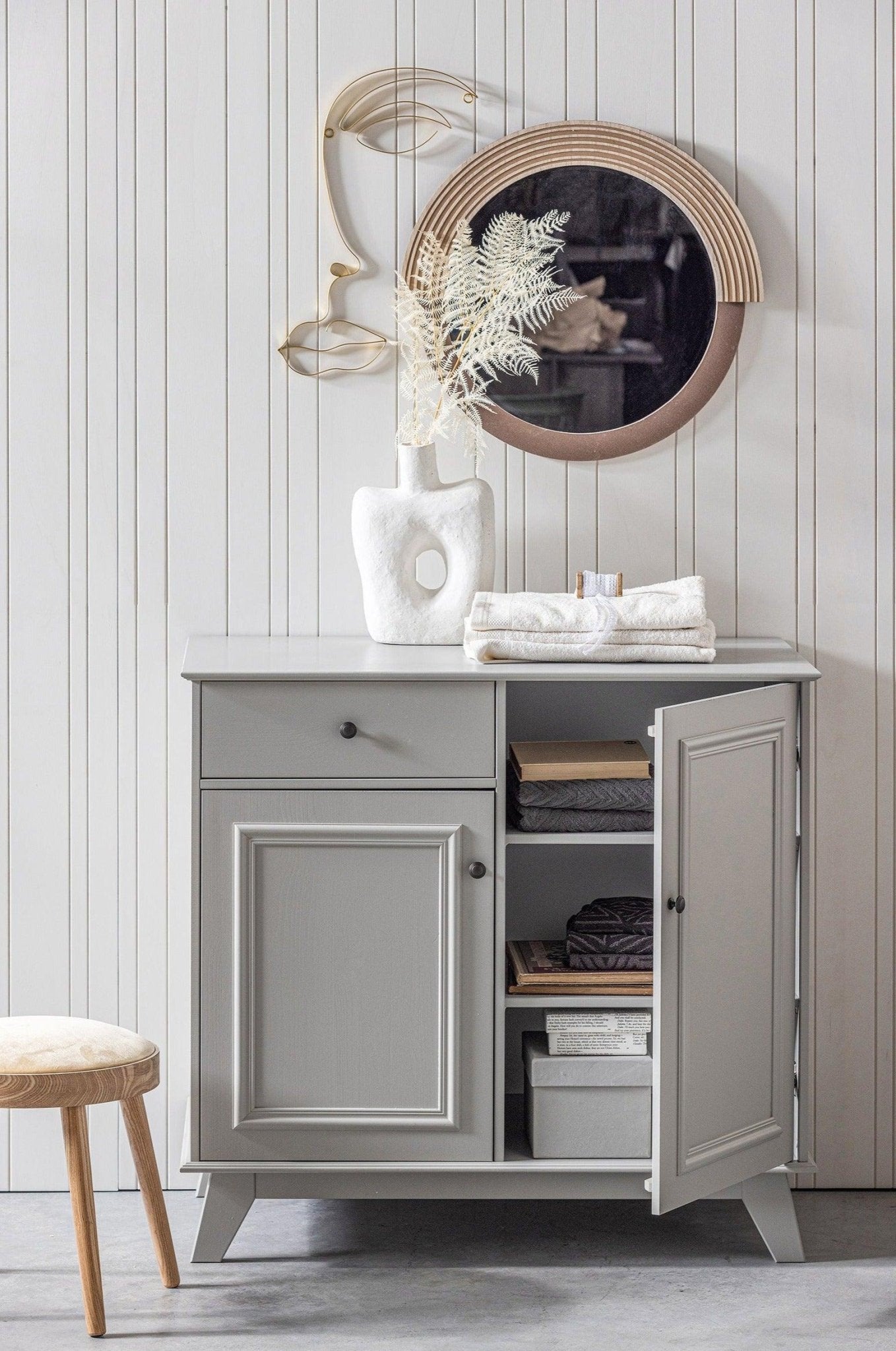 Die Kommode Lily ist eine Hommage an die Tradition. Die klassische, sandfarbene Oberflächenbehandlung harmoniert perfekt mit den gefrästen Fronten sowie der minimalistischen Form. Dank der tiefen Schublade und der zwei geräumigen Fächer kann die sandfarbene Kommode Lily all Ihre wichtigen Gegenstände aufnehmen.