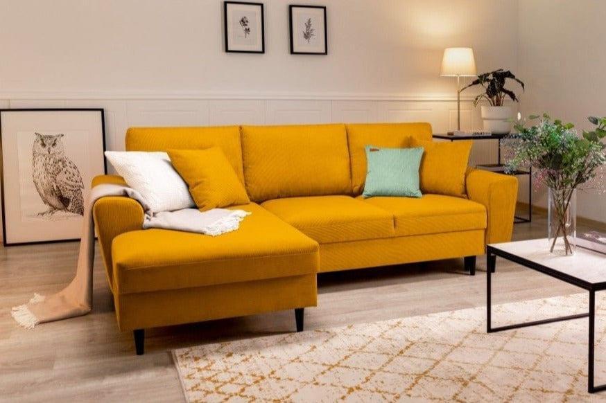 Das Sofa begeistert nicht nur durch sein Aussehen, sondern ist auch eine funktionale Ergänzung für ein gemütliches Wohnzimmer. In kürzester Zeit kann es sich in ein bequemes Bett mit praktischem Stauraum für Bettwäsche verwandeln. Dies ist die ideale Lösung für unerwartete Gäste oder multifunktionale Räume. Das Anschauen Ihrer Lieblingsserie im Familienkreis oder ein Nachmittagsschläfchen nach einem anstrengenden Tag erhalten mit einem so bequemen Ort zum Entspannen eine ganz neue Dimension.