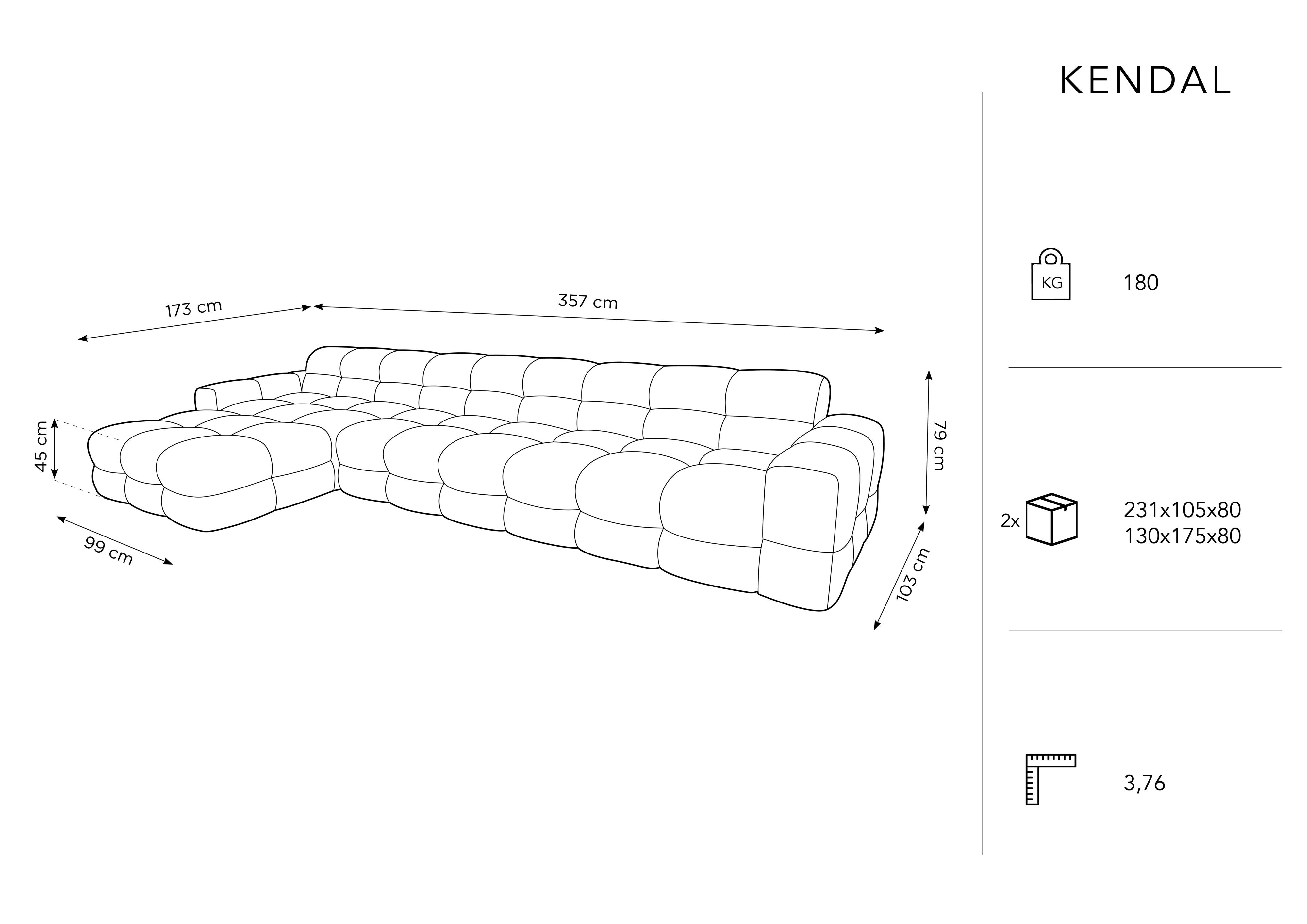 Narożnik lewostronny 5-osobowy KENDAL jasnoszary Micadoni    Eye on Design