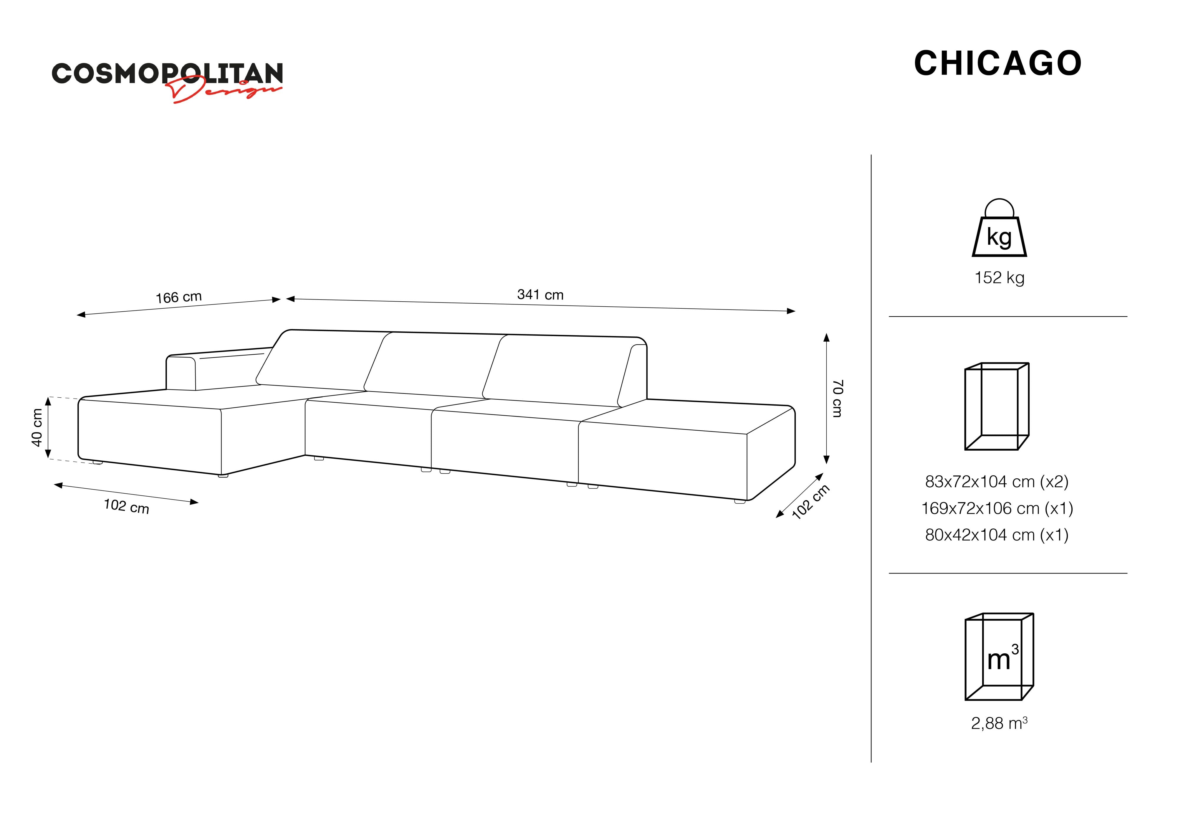 Narożnik lewostronny aksamitny 5-osobowy CHICAGO szary Cosmopolitan Design    Eye on Design
