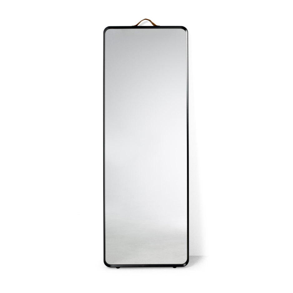 Der Norm- Spiegel ist ein elegantes und minimalistisches Accessoire, das sich gut in Badezimmer, Flur, Schlafzimmer oder Ankleidezimmer einfügt. Der schlanke, schwarze Rahmen aus pulverbeschichtetem Aluminium verleiht ihm einen modernen Charakter, und die große Oberfläche vergrößert den Raum optisch und bietet einen komfortablen Blick aus jeder Perspektive.