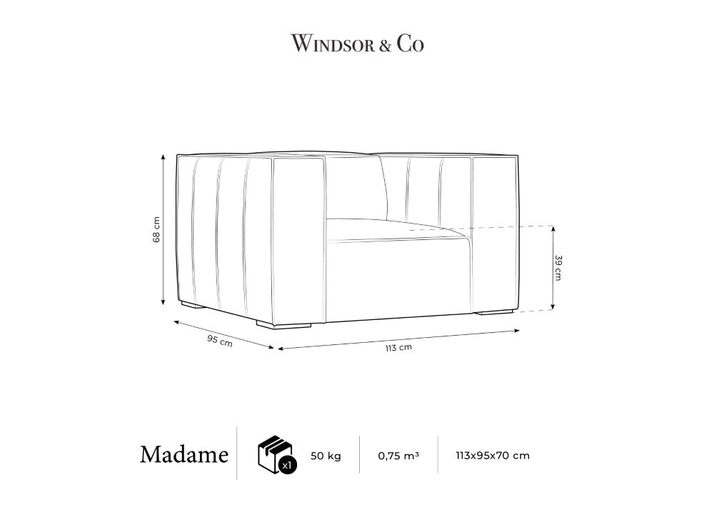 Breite Armlehnen verbinden sich mit der bequemen Rückenlehne und schaffen ideale Bedingungen für Entspannung und Erholung nach einem langen Tag. Die exklusive Kollektion Madame begeistert durch hohe Verarbeitungsqualität und einen Bezug aus Rindsleder. Sie wird die perfekte Ergänzung für ein geräumiges Wohnzimmer oder ein luxuriöses Büro sein.