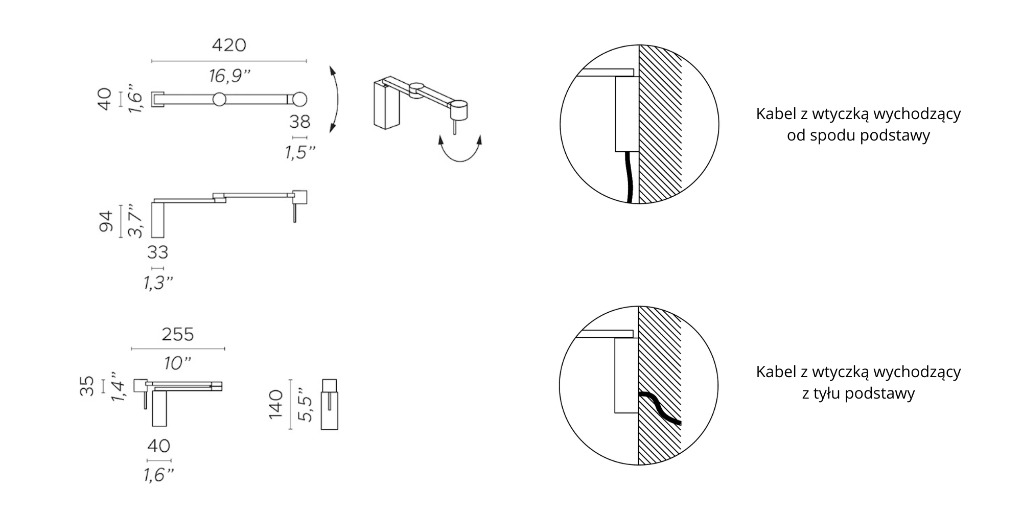 Sie kann am Bett oder direkt am Kopfteil verwendet werden. Sie zeichnet sich durch einen doppelten Arm aus, der sich sowohl um die Basisachse, das Gelenk beider Arme als auch am Lampenkopf bewegt.