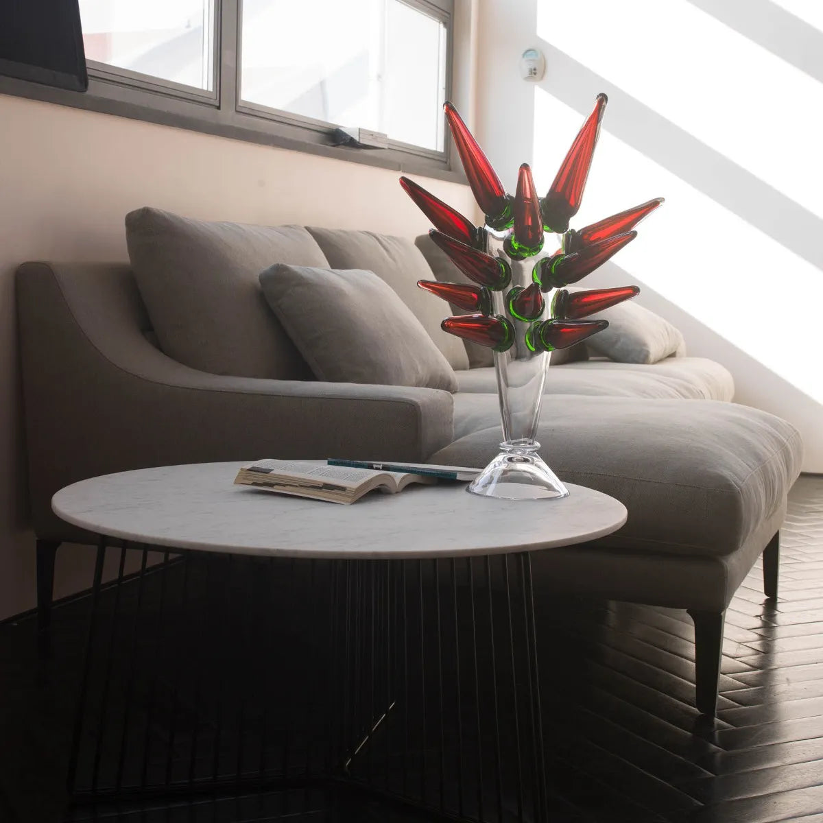 Dieses Projekt zeugt nicht nur von handwerklichem Können, sondern auch von einem künstlerischen Gestaltungsansatz – als wäre die reine Form des Glases plötzlich von wilder, surrealer Vegetation überwuchert. Maria Pia ist eine Vase, die an der Grenze zwischen Skulptur und Gebrauchsgegenstand balanciert, perfekt für Liebhaber unkonventioneller, künstlerischer Akzente im Interieur.