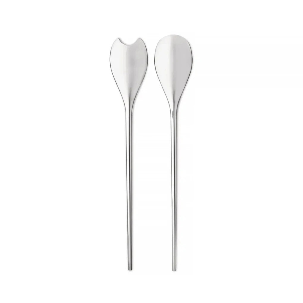 Aus hochwertigem Edelstahl, Stahl, Besteck für Salat Die menschliche Sammlung zeichnet sich durch eine moderne organische Form aus, die sich auf eine von der Natur inspirierte Linie bezieht. Eine glatte, polierte Oberfläche beeindruckt nicht nur die Ästhetik, sondern garantiert auch eine einfache Reinigung und Haltbarkeit. Dank des ergonomischen Designs liegen sie perfekt in der Hand und ermöglichen das Serviersalat und andere Gerichte.