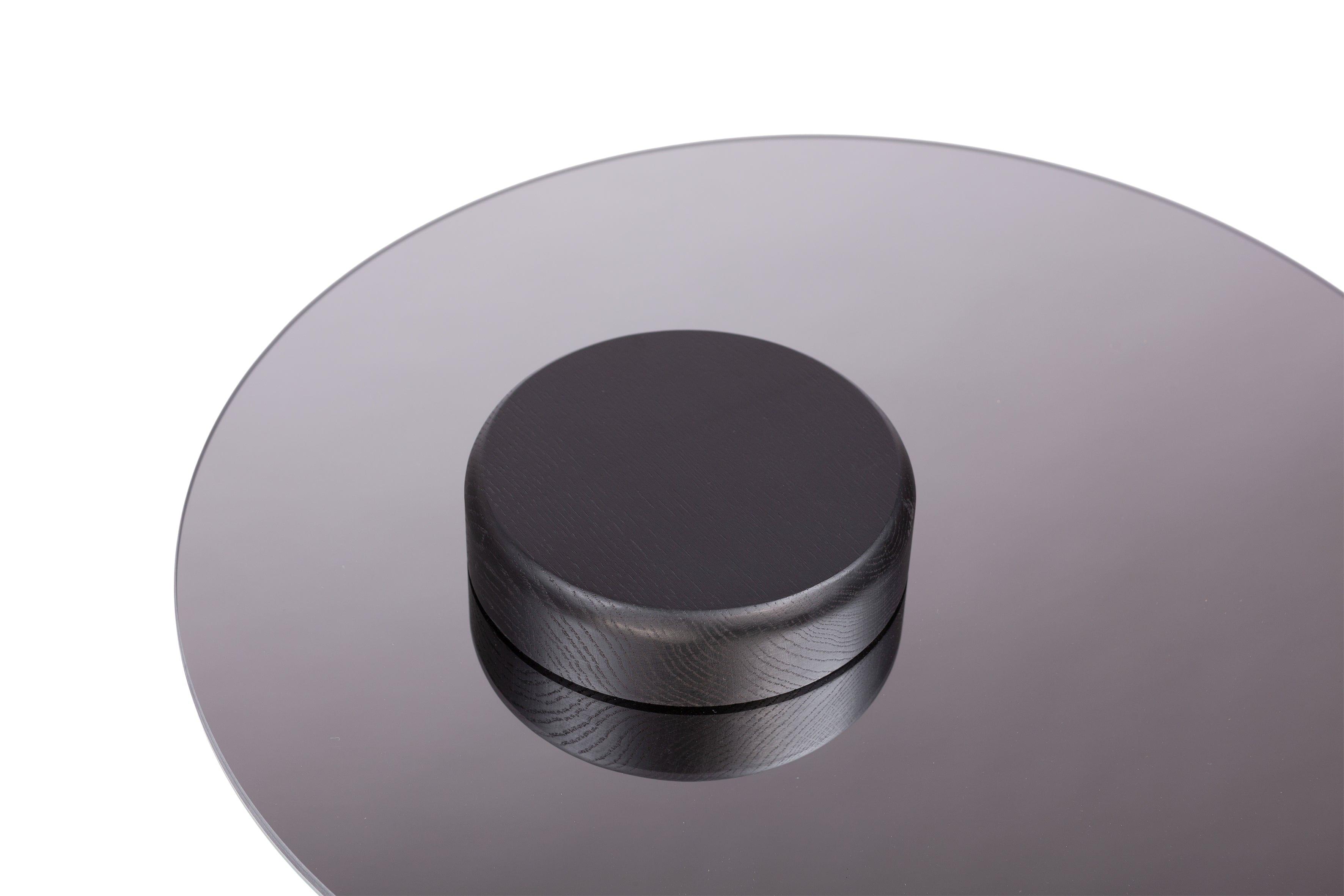 Skien zu elegantem Couchtisch in einzigartiger Form und Stil. Das Gestell aus natürlichem massivem Eichenholz trägt die spiegelnde Tischplatte. Das Gesamtbild wird die Aufmerksamkeit jedes Gastes auf sich ziehen und dem Raum einen raffinierten Charakter verleihen. Der Tisch sieht nicht nur schön aus, sondern ist auch voll funktionsfähig.