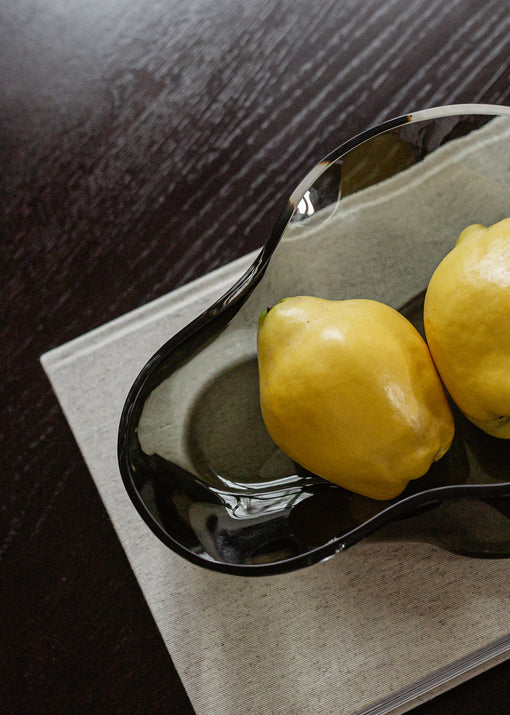 Misa Aer ist ein äußerst elegantes Dekorationselement, das mit seiner organischen Form und subtilen Charakter begeistert. Hergestellt aus rauchigem Glas, zieht es mit seinen geschwungenen Linien, inspiriert von der Bewegung der Luft und dem wirbelnden Rauch, die Blicke auf sich. Ihre asymmetrische Form und zarte Textur lassen das Licht auf außergewöhnliche Weise hindurchscheinen, wodurch ein Spiel von Reflexionen und Schatten entsteht. Misa präsentiert sich sowohl als Schale für Früchte oder Süßigkeiten als auch als eigenständige Dekoration und verleiht dem Raum einen künstlerischen und raffinierten Charakter.