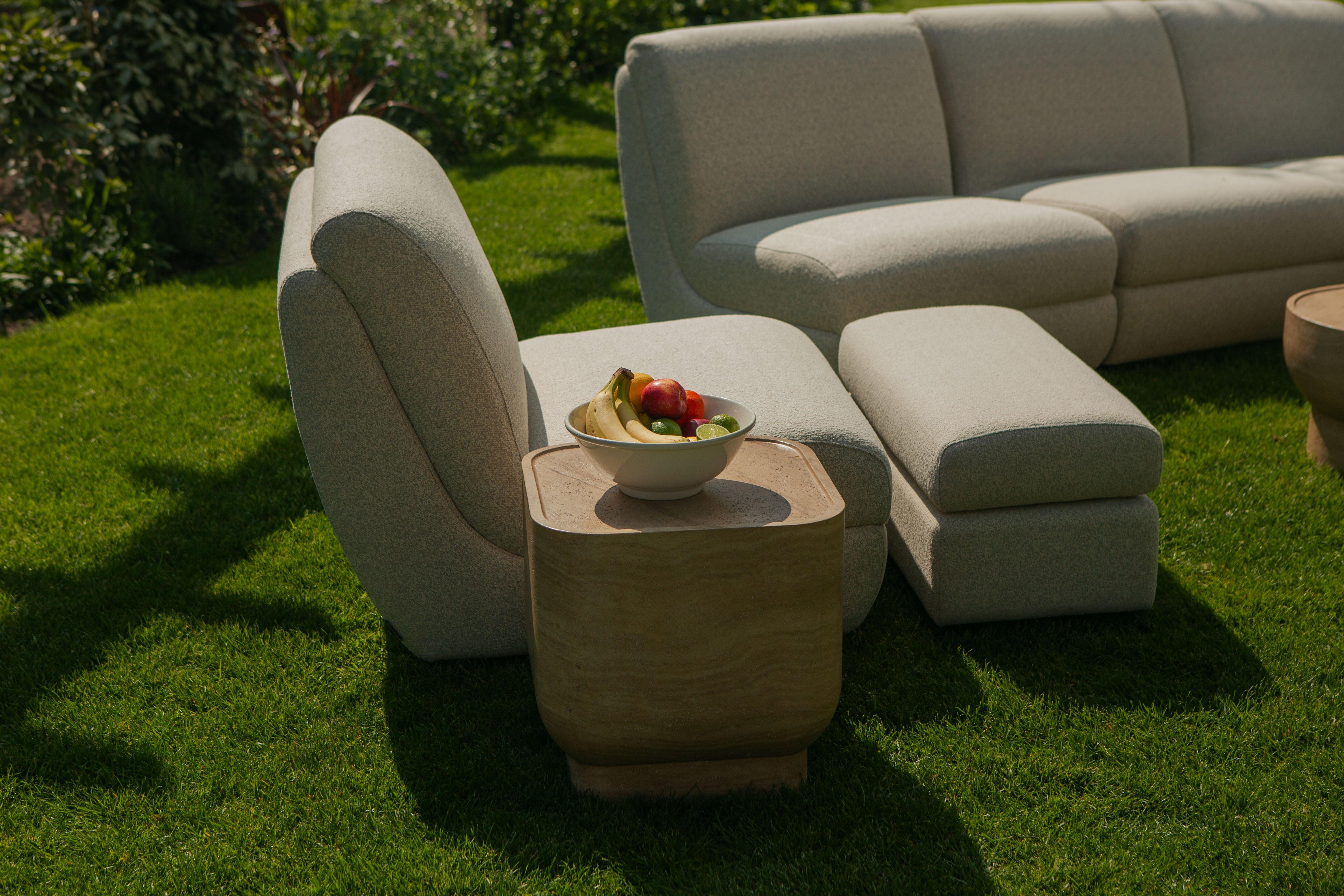 Unabhängig davon, ob Sie sich im Wohnzimmer entspannen oder die Sonne auf der Terrasse benutzen, Puff Mississippi übergeht sanft von der Eleganz des Innenraums zum Komfort im Freien. Der gebrochene weiße Stoff ist widerstandsfähig gegen Wetterbedingungen und bietet Stil unabhängig von Regen oder Sonne.