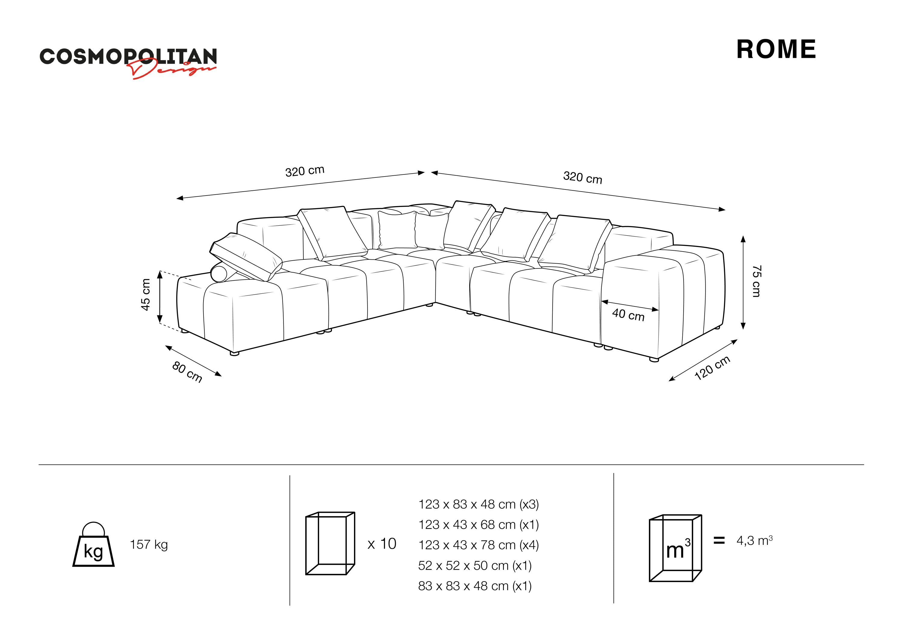 ROME ist eine außergewöhnliche Kombination aus Eleganz, Komfort und Modernität. Die Eckcouch ist mit einem wunderschönen, luxuriösen Stoff bezogen, und ihre einzigartige Farbe schafft unzählige Gestaltungsmöglichkeiten. Das modulare Sofa sieht nicht nur großartig aus, sondern fühlt sich auch sehr angenehm an und ist abriebfest.