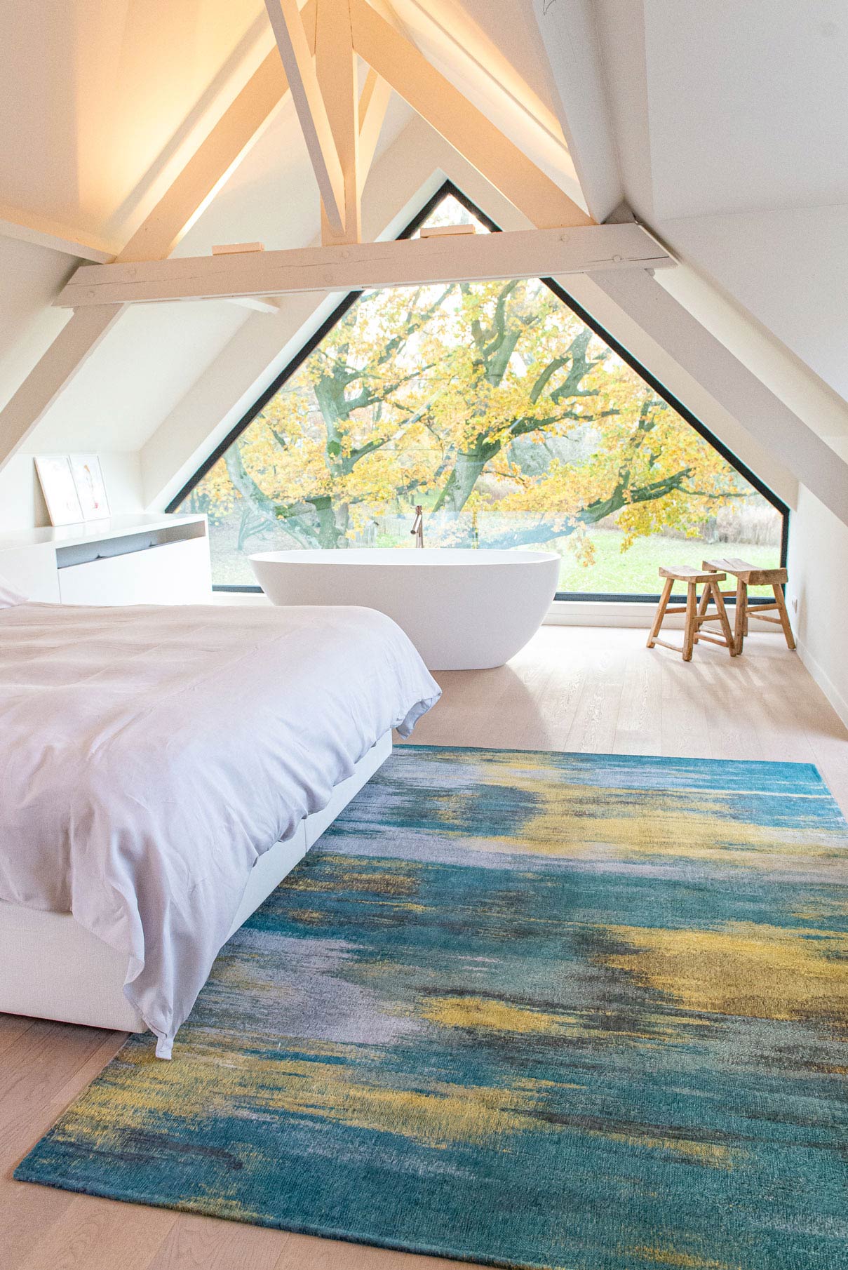 Teppich Monetti Nymphea Blue ist die perfekte Wahl für diejenigen, die nach einem einzigartigen Teppich suchen, der zum Mittelpunkt der Anordnung wird. Seine verschiedenen Farbtöne und subtilen Farbübergänge machen es perfekt sowohl klassisch als auch modern.