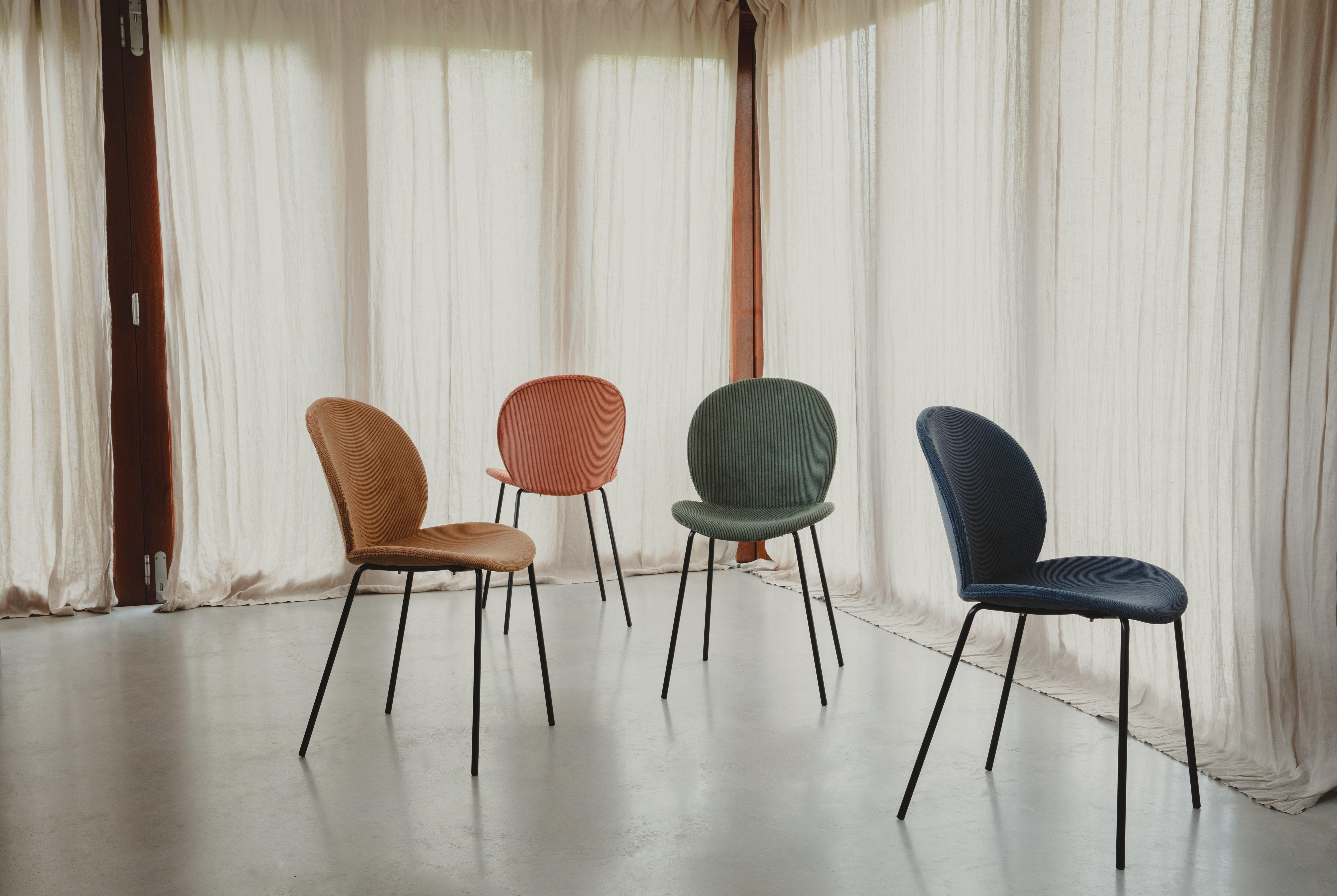 Einfachheit ist eine Schlüsselkomponente der echten Eleganz. Stuhl Bonnet ist ein gutes Beispiel. Einfache Linien eines schwarzen Metallrahmens ermöglichen den Stoff, Ihre Textur anzuzeigen. Bonnet wird aus einem eleganten, weiblichen Hut genannt, den Pariser getragen wurden.