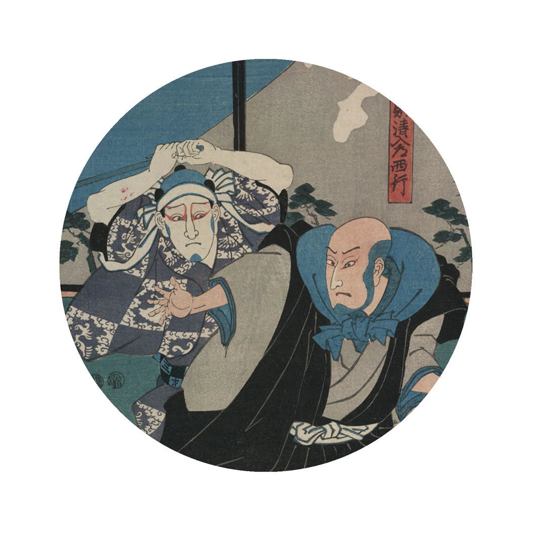 Wandbild in Kreisform DOTS - ZEN WARRIORS grau mit Blau