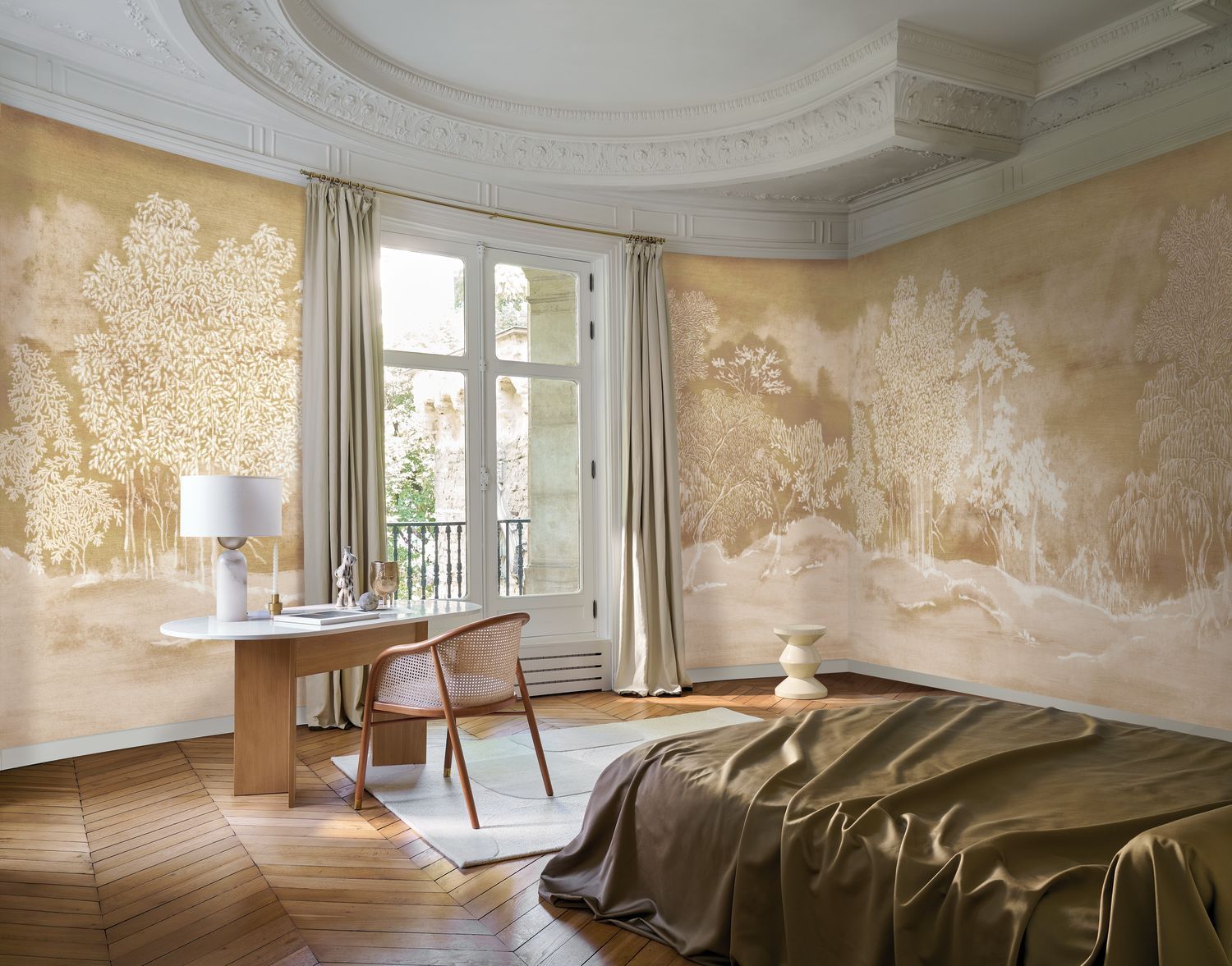 Dieses beeindruckende Wandbild verzaubert mit seiner Fülle an Texturen und Farben und eröffnet Ihnen völlig neue Gestaltungsperspektiven. Es fügt sich sowohl in moderne und zeitgenössische Räume als auch in Vintage- oder eklektische Innenräume perfekt ein. Die Kollektion ist eine Reise durch atemberaubende Landschaften - von den Tiefen des Meeres über ruhige Wälder bis hin zu exotischen Dschungeln - und das Wandbild Koraku ist ein eleganter und auffälliger Akzent, der den Wänden einen einzigartigen Charakter verleiht und eine unverwechselbare Atmosphäre in Ihrem Zuhause schafft.