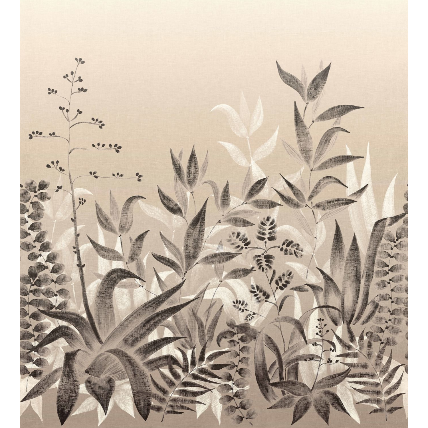 Das Wandbild Saona entführt in einen mediterranen Garten, wo massive Agaven und Aloen mit zarten Gräsern kontrastieren. Das botanische Muster ist auf einem Hintergrund platziert, der an Leinen erinnert, was den Räumen einen warmen und einladenden Charakter verleiht. Dieses wunderschöne Paneel, handgemalt von dem Designstudio Casamance, begeistert mit natürlichen Texturen und einem subtilen Spiel von Licht. Dank der Möglichkeit, das Muster zu wiederholen, kann das Wandbild an jede Wandbreite angepasst werden, was große gestalterische Freiheit bietet.