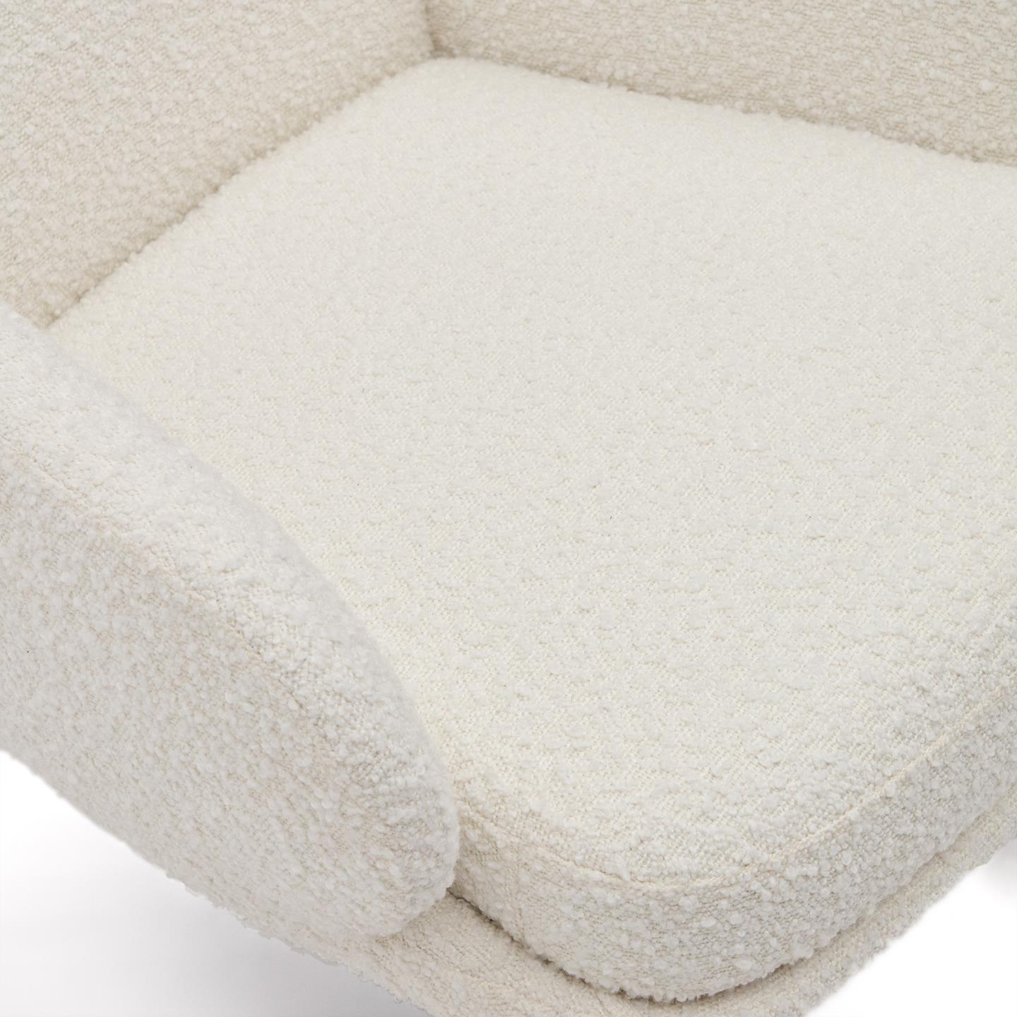 Weißer Schaukelstuhl aus Boucle-Stoff Maustin ist nicht nur ein Möbelstück; es ist eine Oase der Ruhe, die dazu einlädt, in entspannende Momente einzutauchen. Gönnen Sie sich den Luxus außergewöhnlichen Designs und Komforts, indem Sie Maustin zu Ihrem Lieblingsbegleiter für die Entspannung wählen.