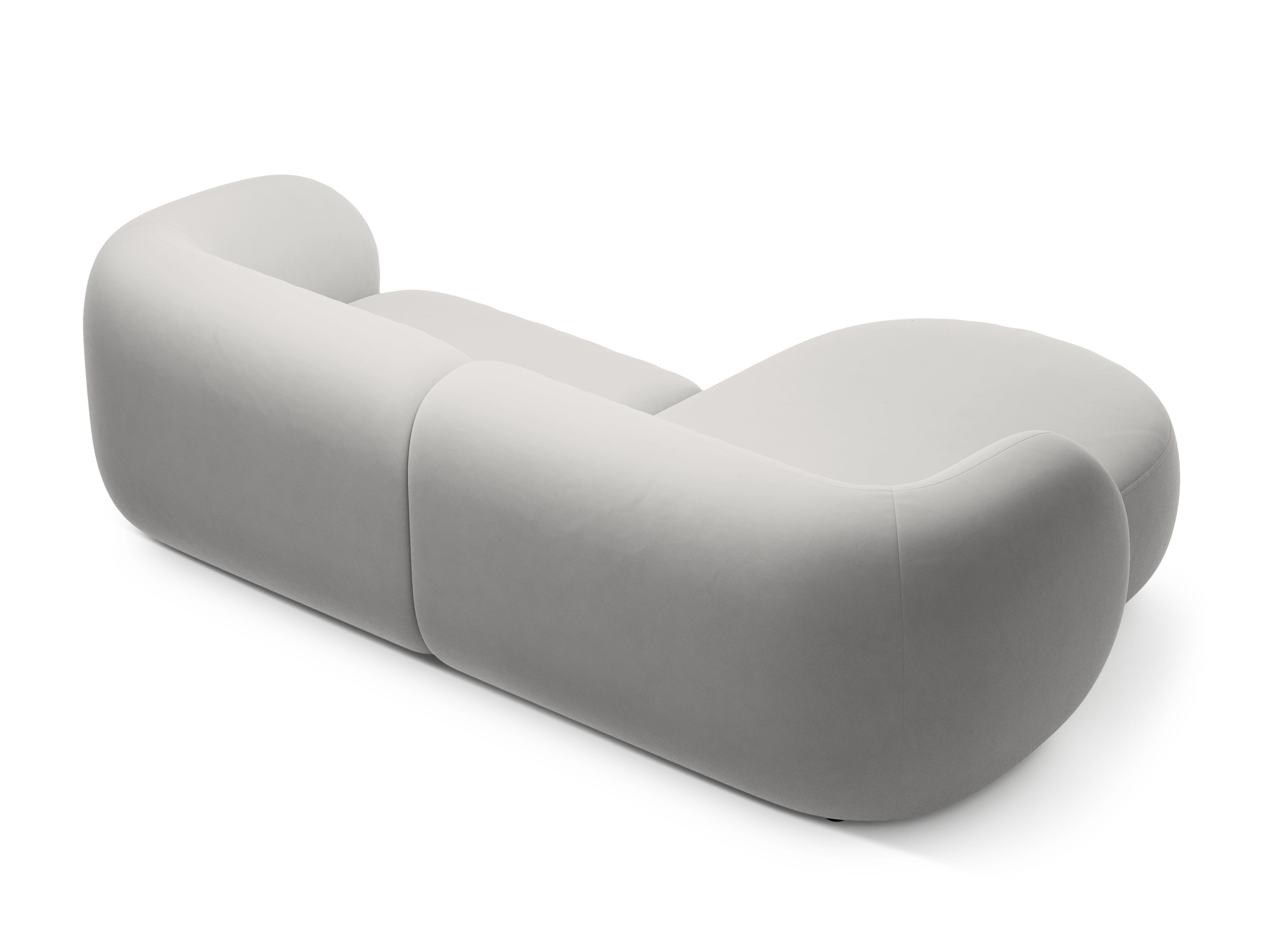 2-sitzige Eckcouch Kate ist ein Vorschlag für diejenigen, die weiche, runde Formen und Komfort in modernem Design schätzen. Ihre kompakte Form macht sie ideal für kleinere Wohnzimmer und schafft gleichzeitig einen stilvollen Ort zum Entspannen und für Treffen. Die abgerundete Linie, inspiriert vom Mid-Century-Stil, und der sanft schimmernde Bezug verleihen dem Möbelstück Eleganz und einen subtilen Charakter. Die elastische Sitzfläche, gefüllt mit Schaumstoff mittlerer Weichheit, sorgt für ausgewogenen Komfort, der sowohl für die tägliche Entspannung als auch für längere Auszeiten im Kreise der Liebsten ideal ist.