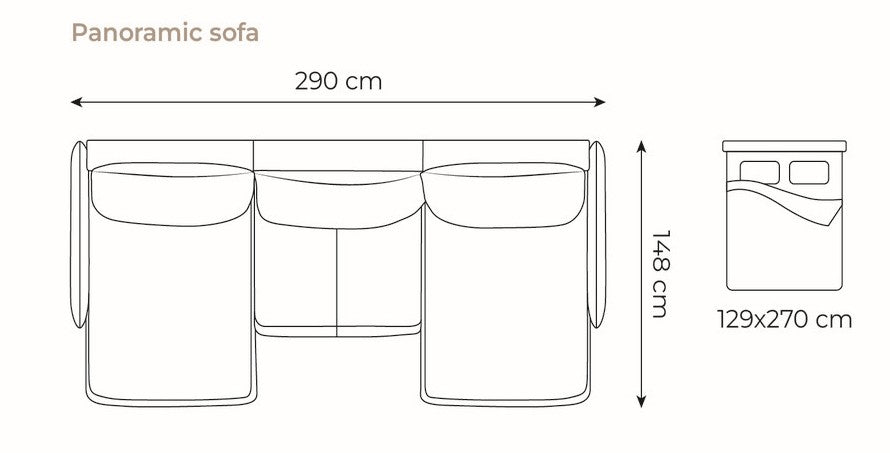 Panoramacouch mit Schlaffunktion NANEA dunkelbeige Chenille