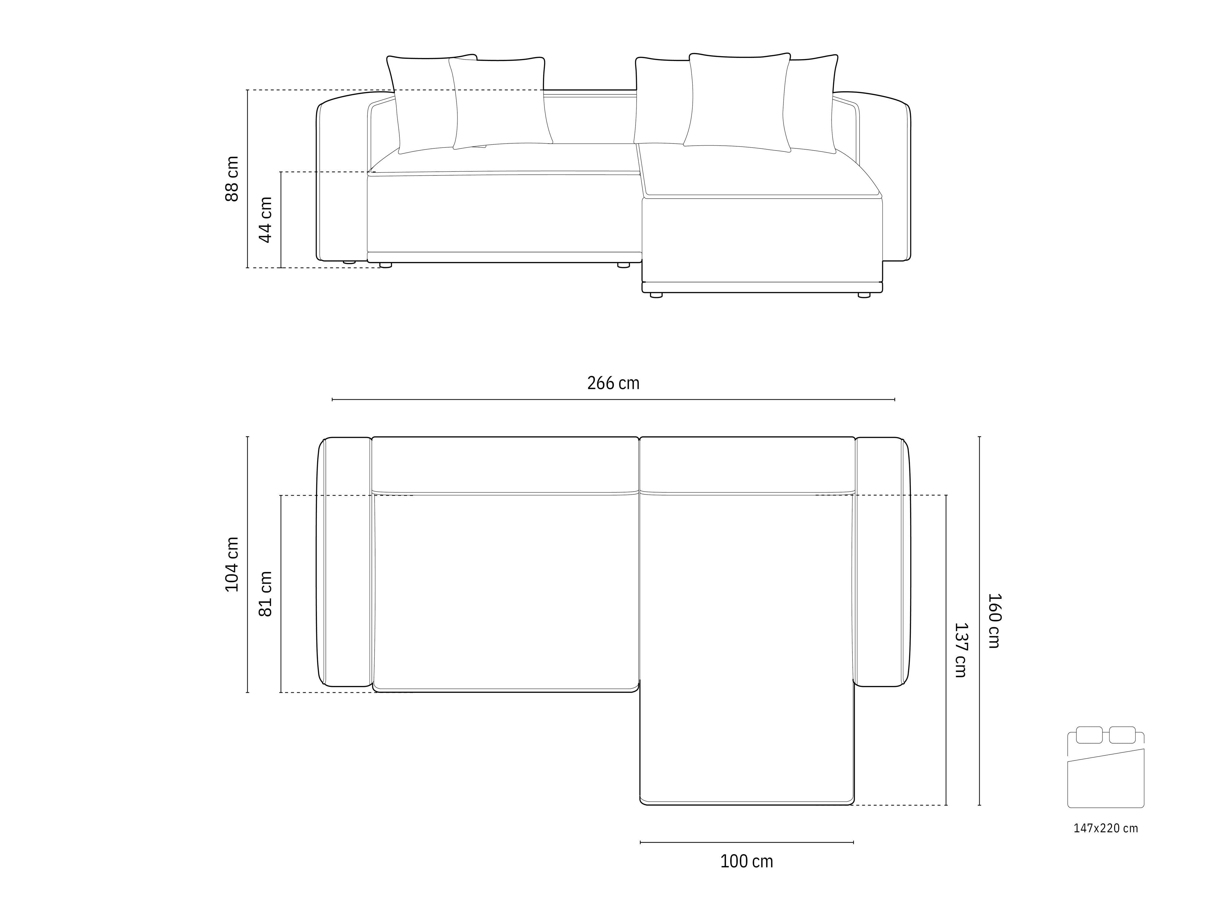 Tkanina Como wyróżnia się drobnym, regularnym splotem, który świetnie imituje naturalny len, ale nie gniecie się jak on. Jej matowa powierzchnia jest miękka i przyjemna w dotyku, a subtelny melanż nadaje meblowi lekkości i nowoczesnego stylu. Materiał jest niezwykle wytrzymały, wodoodporny i odporny na ścieranie, dzięki czemu narożnik z funkcją spania Ribes zachowa swój elegancki wygląd i funkcjonalność przez długie lata.
