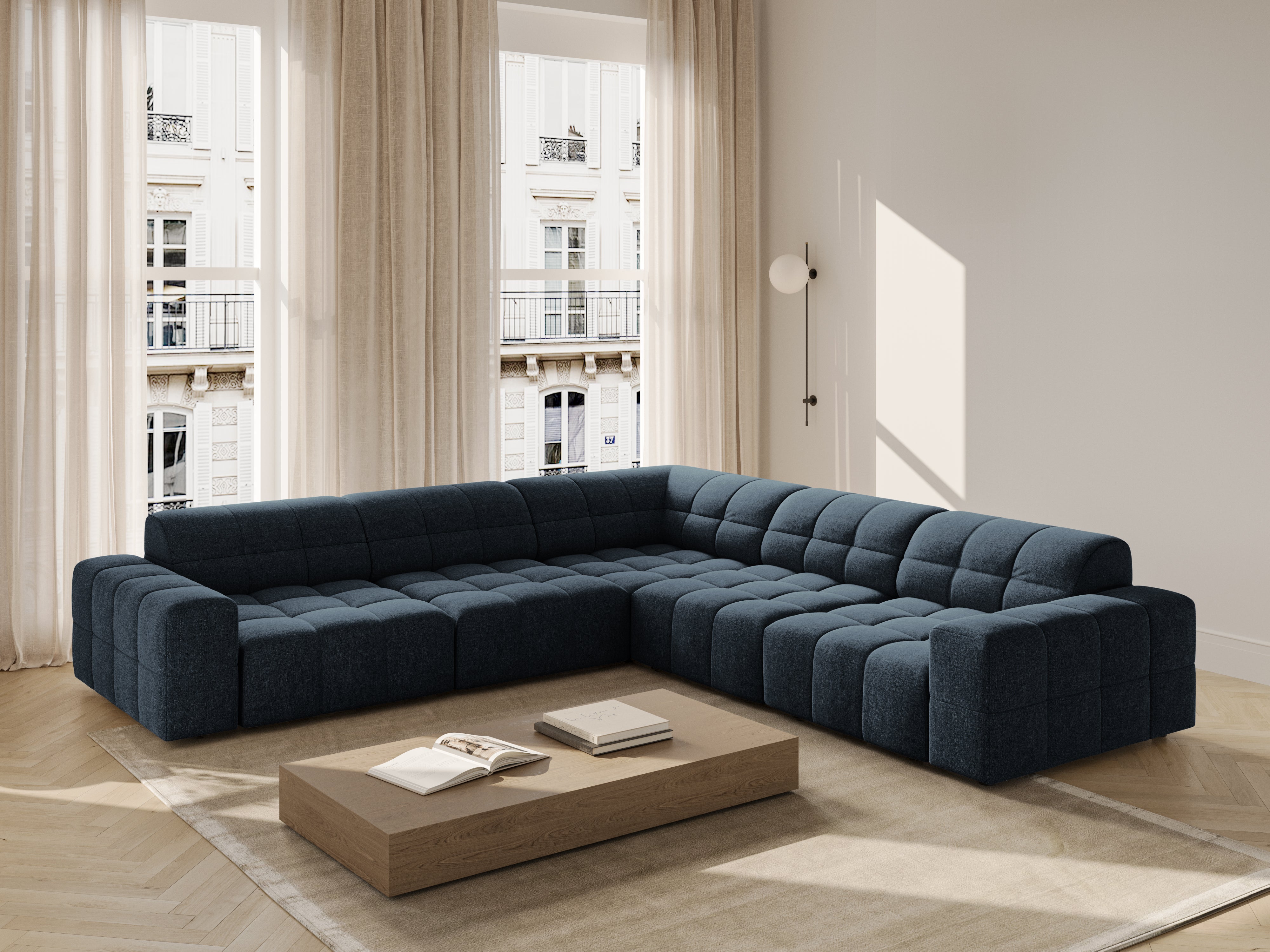 Symmetrische Eckcouch CHICAGO blauer Chenille