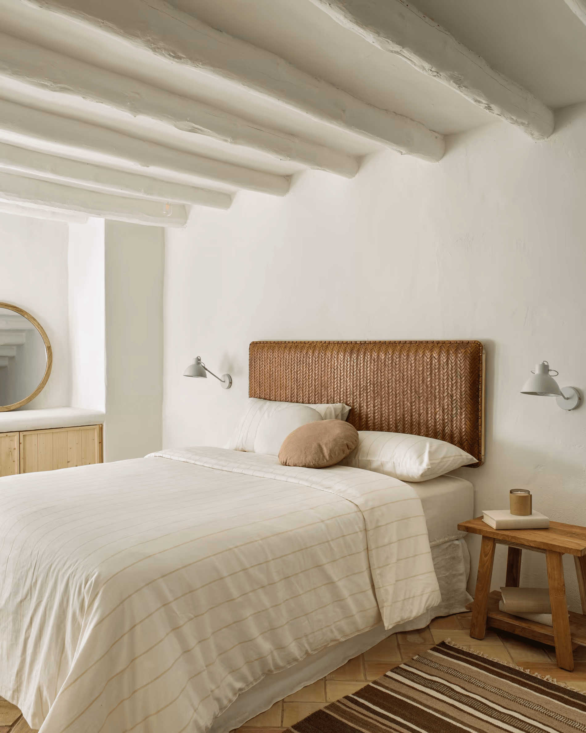 Natesa ist ein exklusives Kopfteil aus handgespültem Kauflattenleder und einer haltbaren Konstruktion von massivem Teakholz. Ideal, um Ihrem Schlafzimmer einen natürlichen und authentischen Akzent hinzuzufügen, der so viel über Sie aussagt.