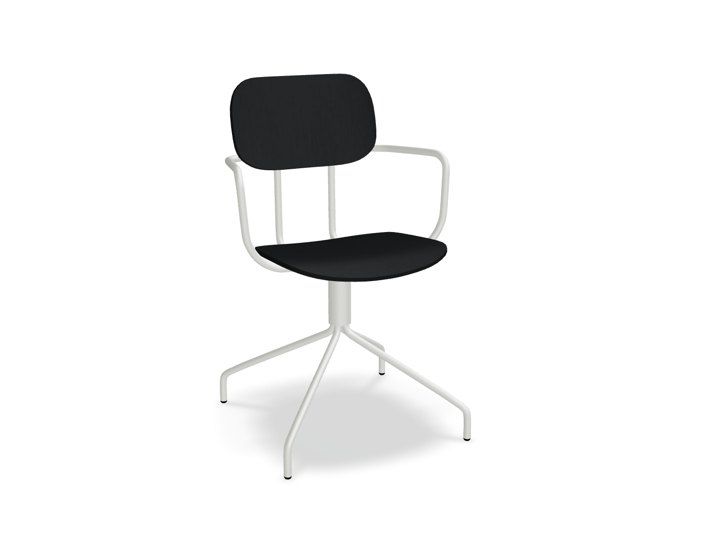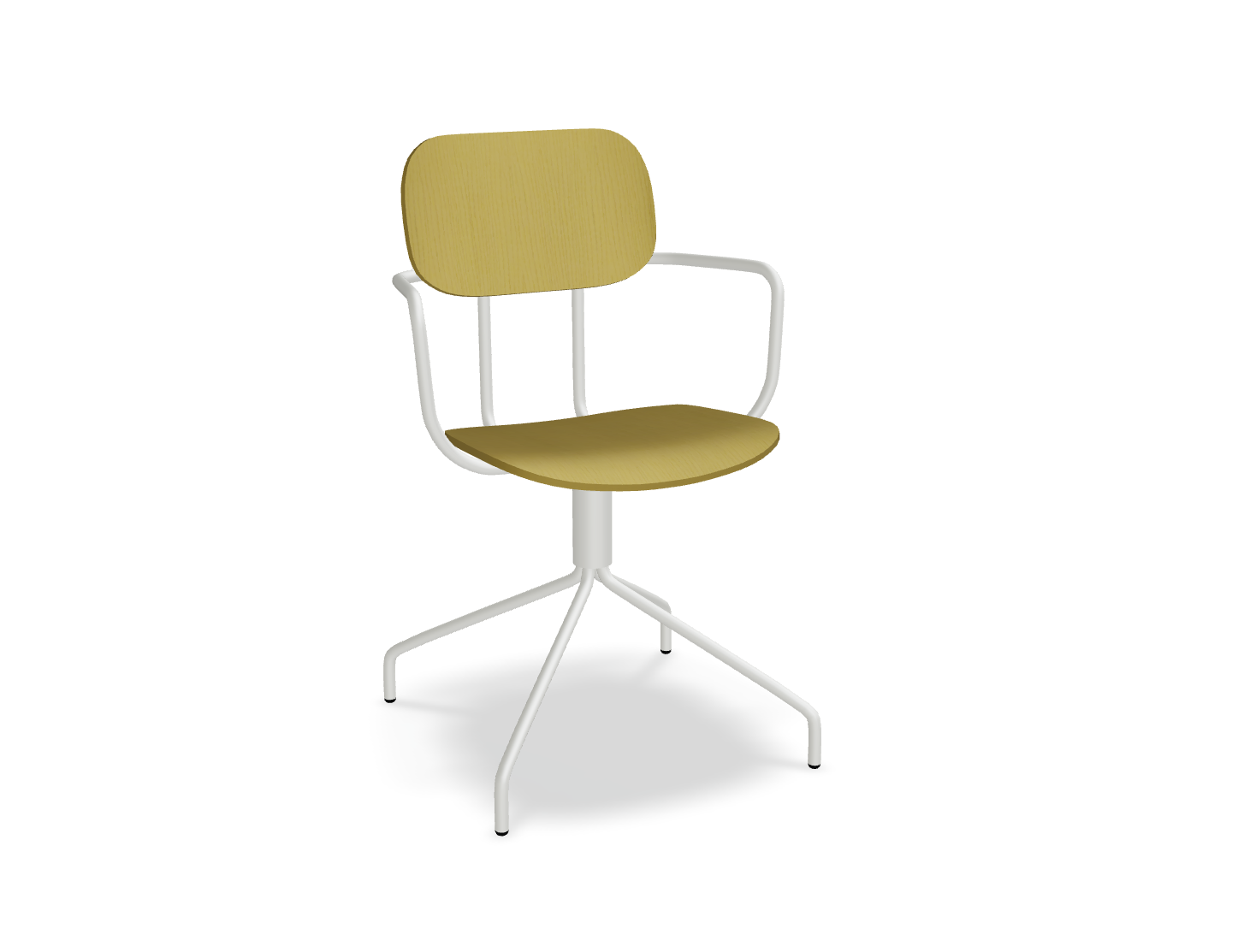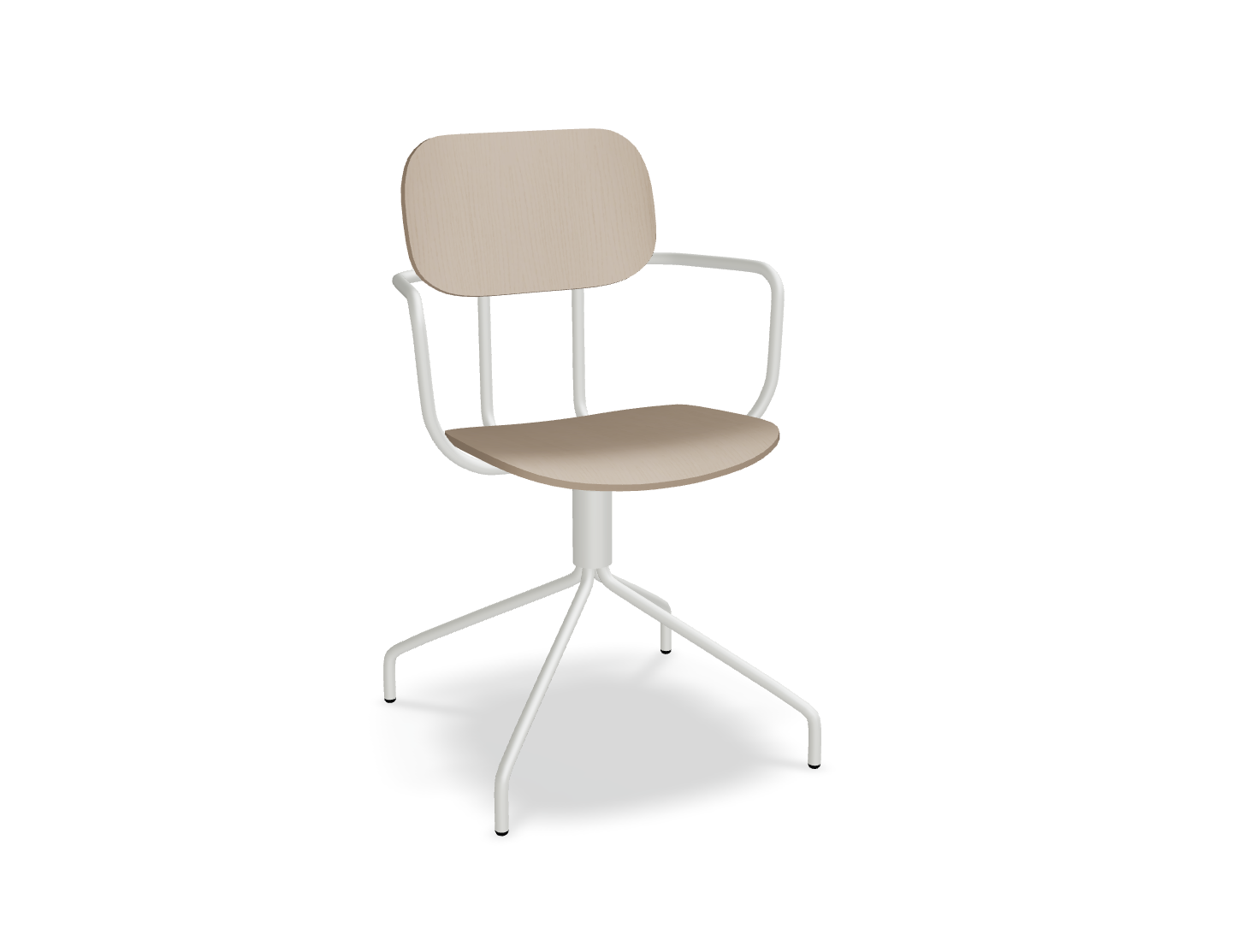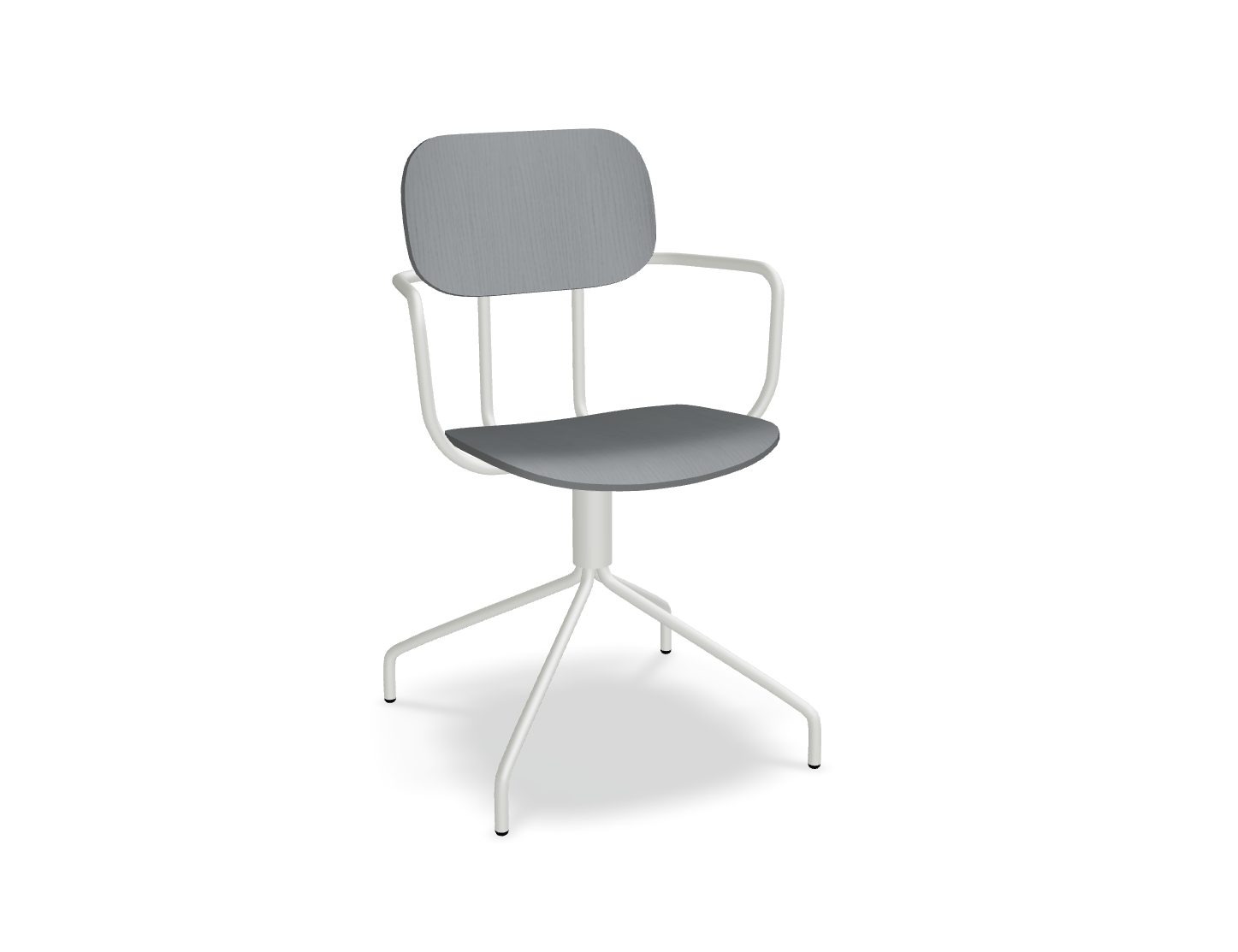 Drehstuhl New School ist eine moderne Neuinterpretation der klassischen Form eines Schulstuhls, das eine breite Palette von Konfigurationen bietet, die an verschiedene Büroräume angepasst sind. In der Sperrholzversion und mit einer rotierenden Basis ist es eine praktische und stilvolle Ergänzung für jeden Innenraum. Mit dem Sitz von 360 ° können Sie frei vom Tisch aufstehen und sich innerhalb des Arbeitsplatzes bewegen, und die optionalen Armlehnen erhöhen den Komfort weiter.