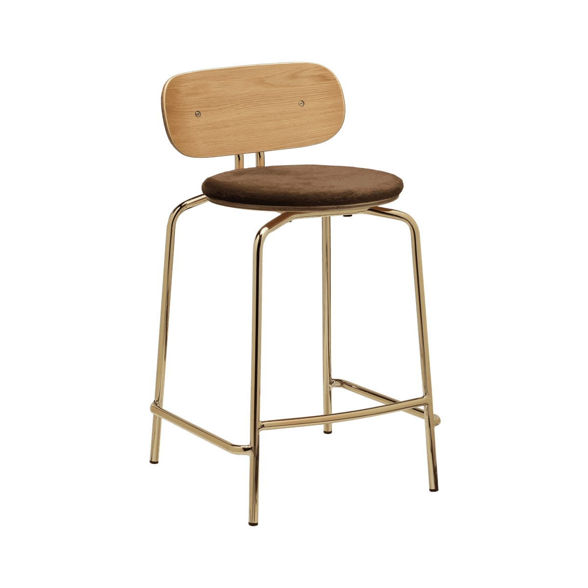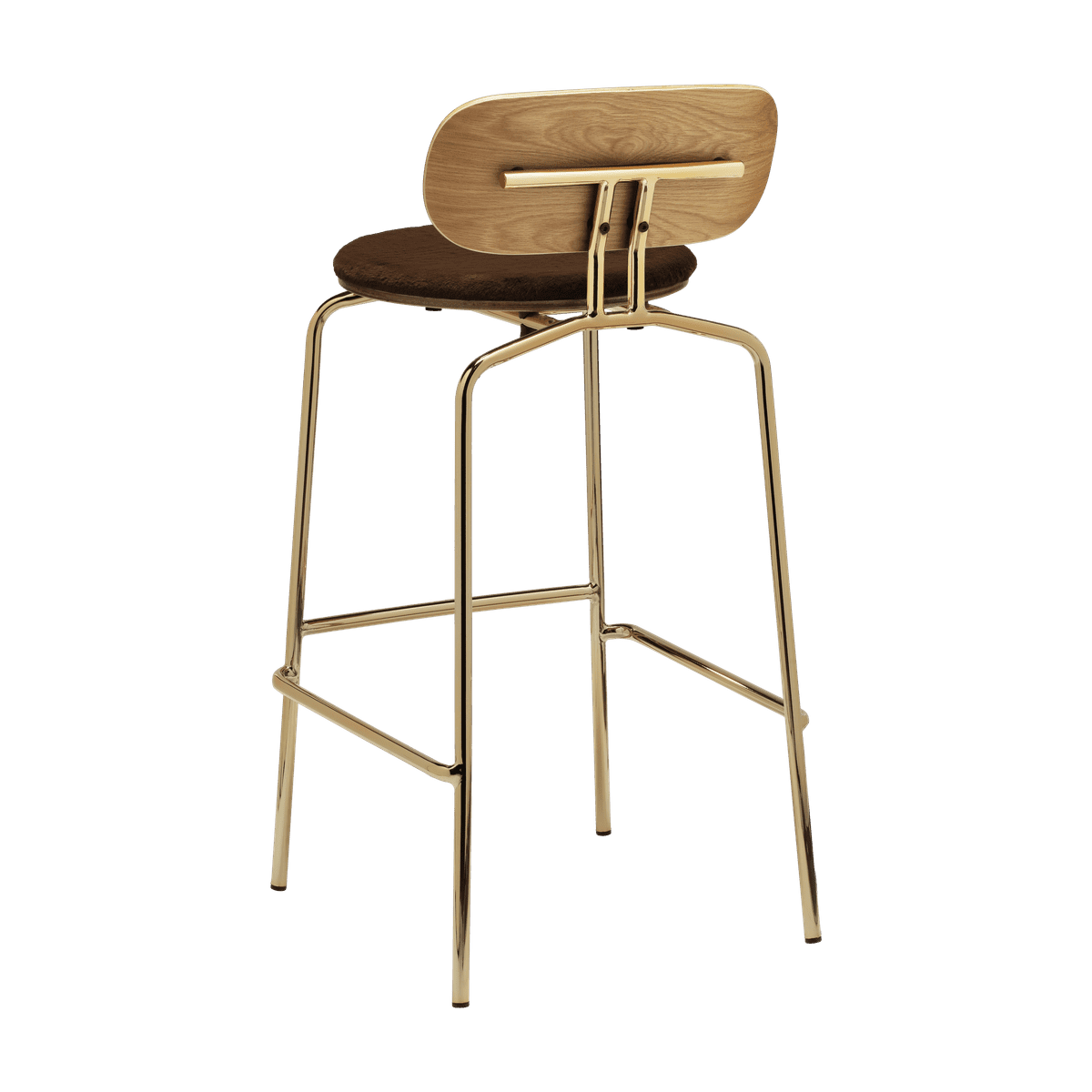 Der Sitz besteht aus Eichenfurnier, kombiniert mit goldenen oder schwarzen Beinen, eine harmonische Kombination aus natürlicher Holzwärme mit modernem Stil. Dank des zeitlosen Designs ist neugierig nicht nur ein praktisches Möbelstück, sondern auch ein ausdrucksstarkes dekoratives Element, das jeden Raum subtile Eleganz bringt.