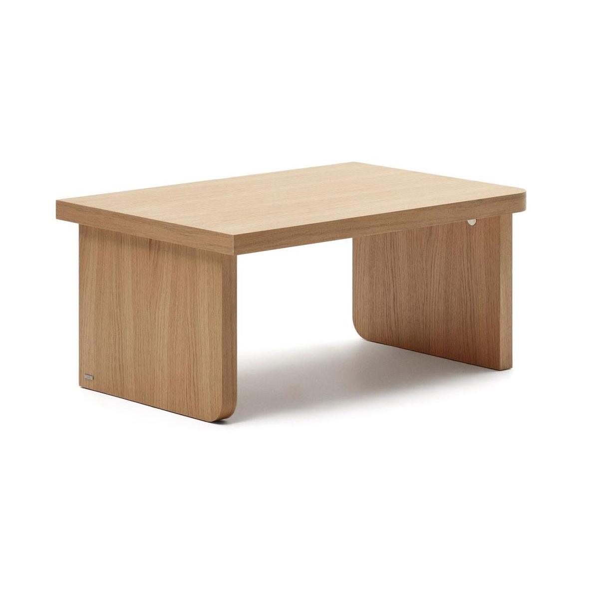 Eichenfurnier, der verwendet wird, um dies zu produzieren Designer Couchtischbetont nicht nur die natürliche Schönheit von Holz, sondern gibt es auch Eleganz und Haltbarkeit. Die Kombination von gekrümmten Formen und geraden Linien erzeugt den Eindruck von Harmonie, dank der der Couchtisch nicht nur zu praktischen Möbeln, sondern auch zu einem einzigartigen dekorativen Element wird.