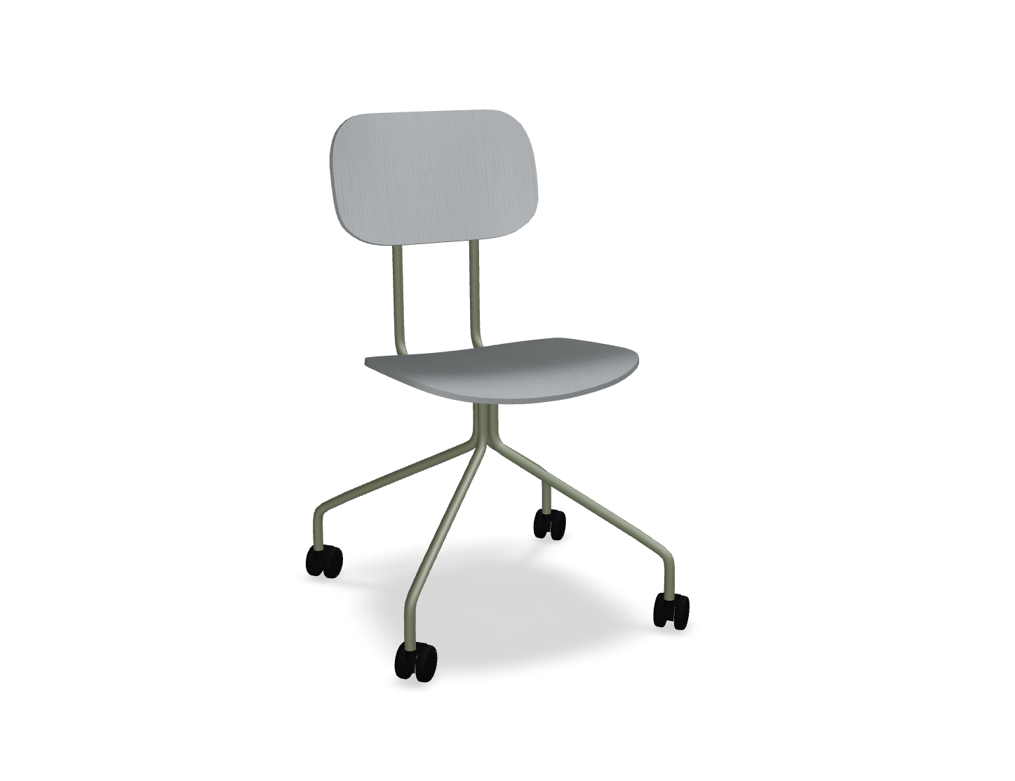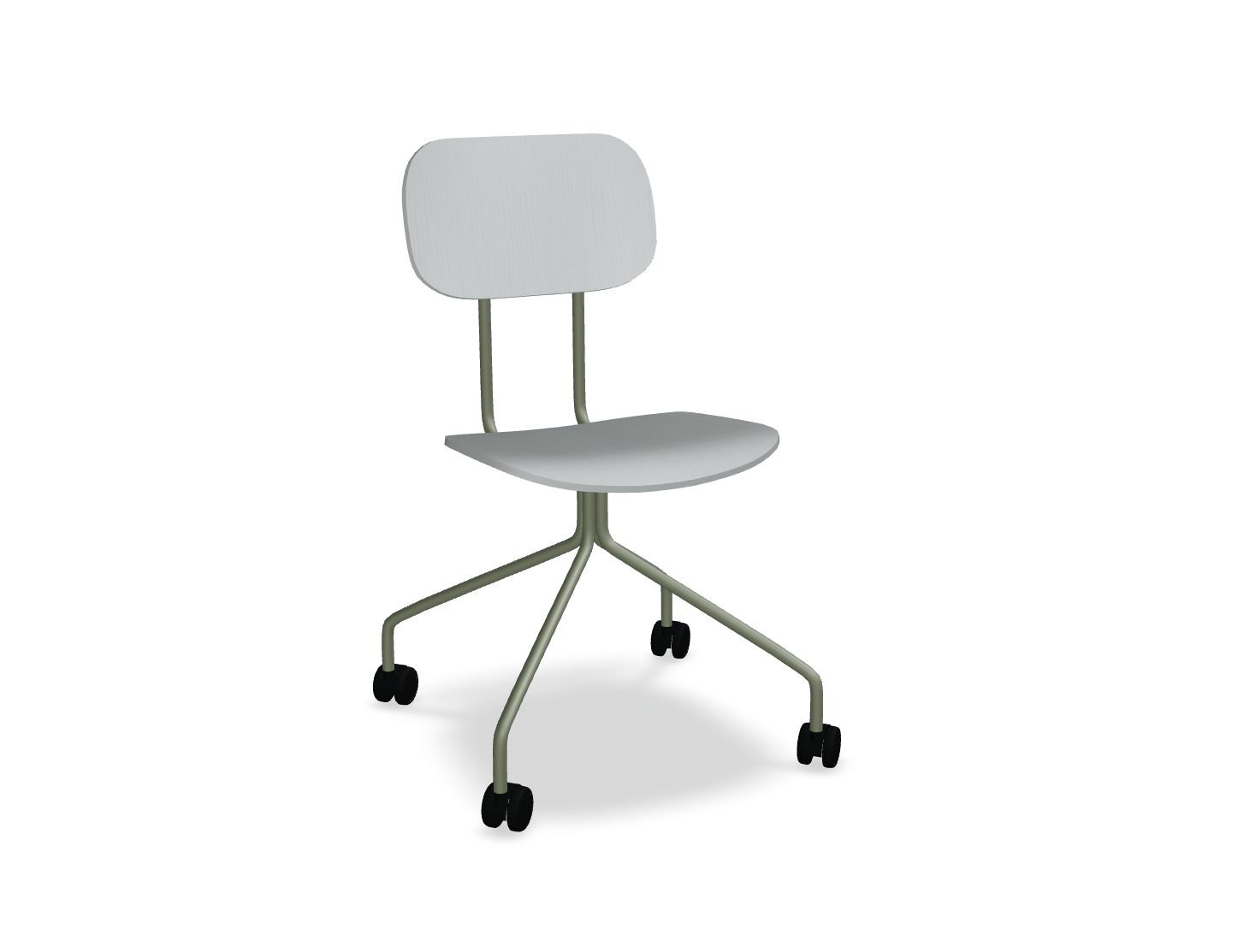 Stuhl Es ist mit einem einfachen Sperrholzsitz erhältlich, was sie ideal für den Raum macht, bei dem sich Benutzer häufig ändern. Die Höhe des Sitzes - 460 mm -, der auf Standardtische zugeschnitten ist, bietet Komfort, und die mobile Basis auf Rädern ermöglicht die freie Bewegung und die Anpassung der Position an die individuellen Bedürfnisse des Benutzers.
