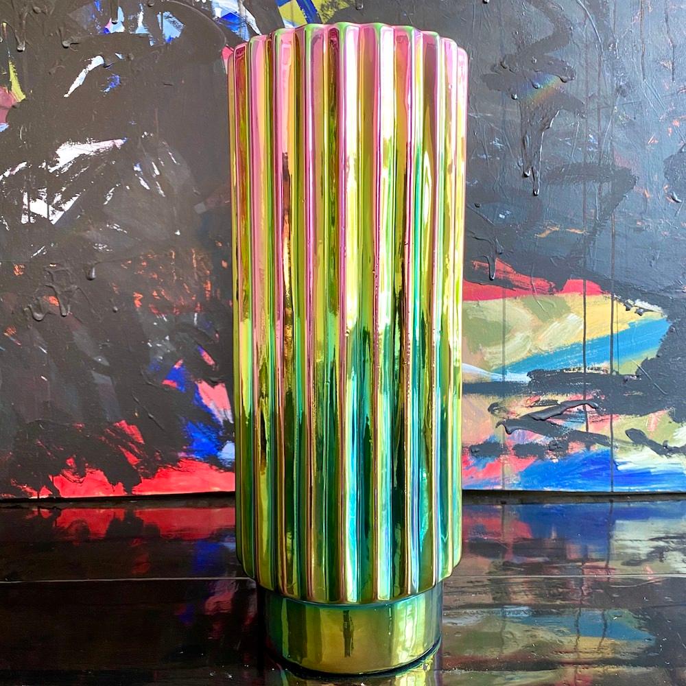 Ihre mutige Form kann jedem Raum ein poliertes, exklusives Aussehen verleihen, das Schönheit und Exzentrizität perfekt ausbalanciert. Bunter Vase Oily Folds wird eine wunderbare Ergänzung für moderne Innenräume sein.