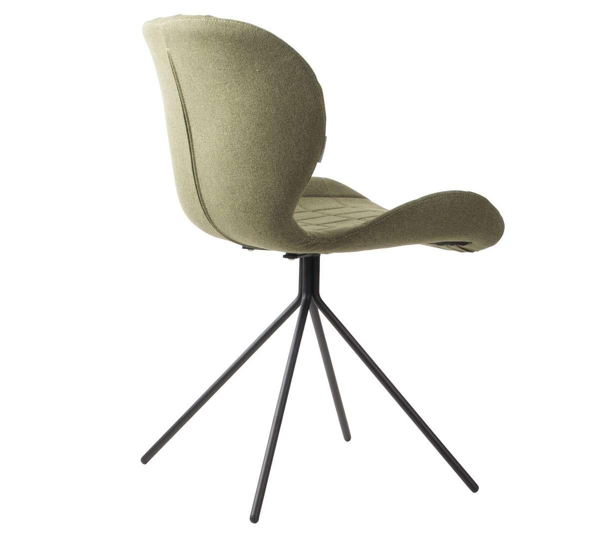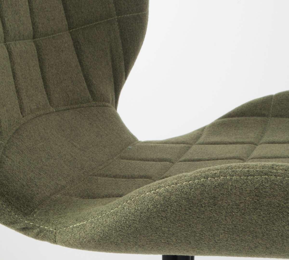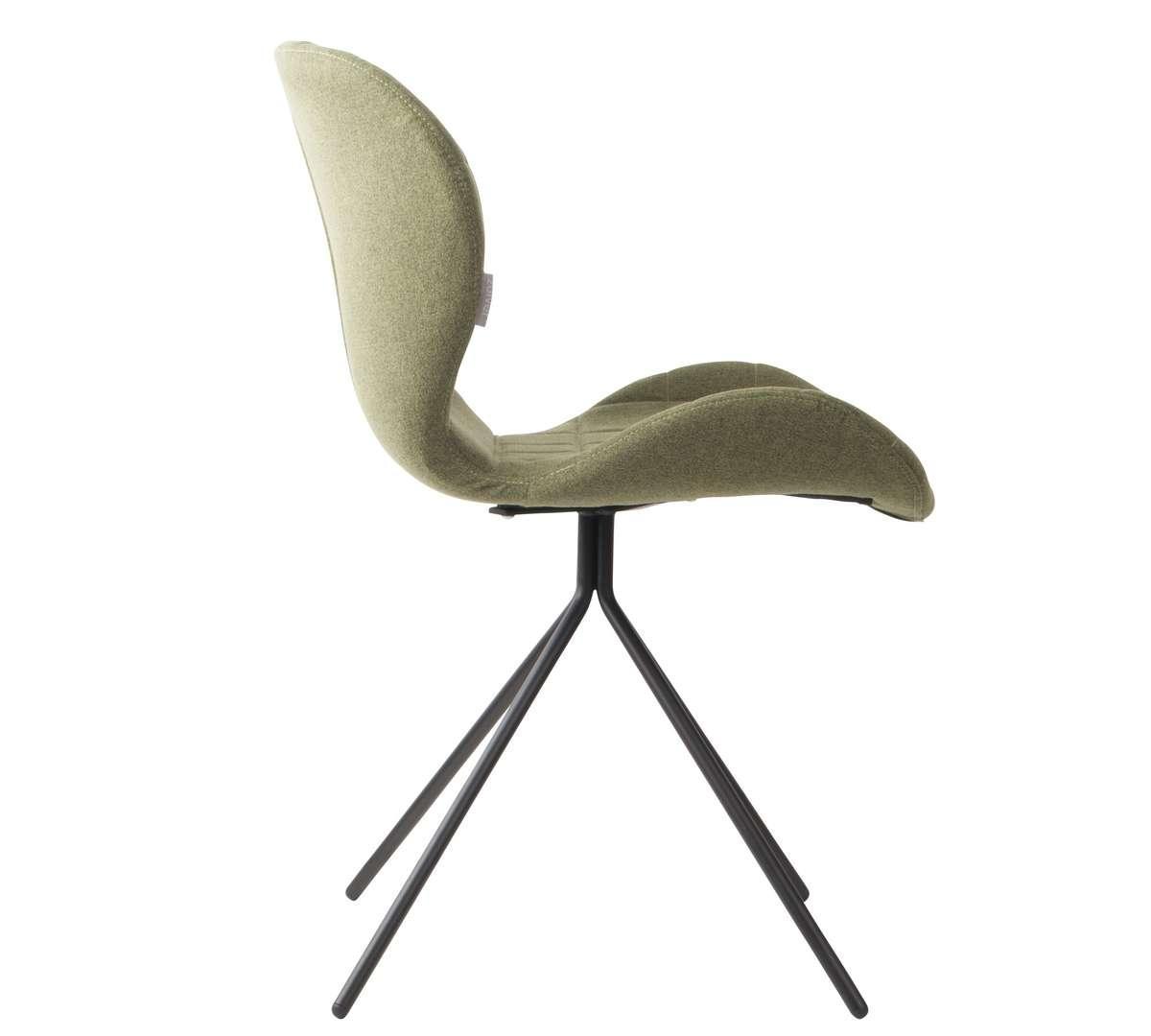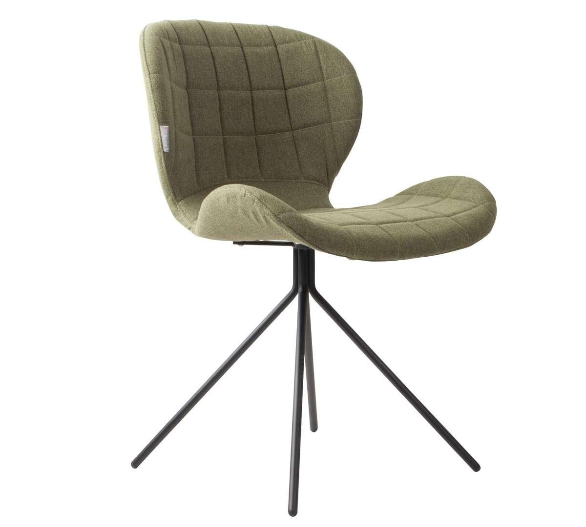 OMG zu modernem Stuhl mit Charakter, der durch seine Form begeistert. Der auffällige Sitz, bezogen mit hochwertigem grünen Stoff, wird durch Rautensteppungen verziert. Sowohl die Sitzfläche als auch die Rückenlehne sind so geformt, dass sie auch bei längerer Nutzung Komfort bieten. Das Metallgestell besteht aus vier, nach innen zulaufenden Beinen in Schwarz.