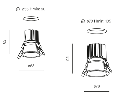 Erhältlich in zwei Größen (Ø63 mm und Ø78 mm) und drei Farbtemperaturen (2700K / 3000K / 4000K) ermöglicht die Leuchte eine präzise Anpassung der Lichtstärke und -farbe an die Bedürfnisse des Raumes. Die Abstrahlwinkel von 41° oder 49° ermöglichen sowohl punktuelle als auch diffuse Beleuchtung, wodurch die Einbauleuchte in verschiedenen funktionalen und dekorativen Anwendungen überzeugt.