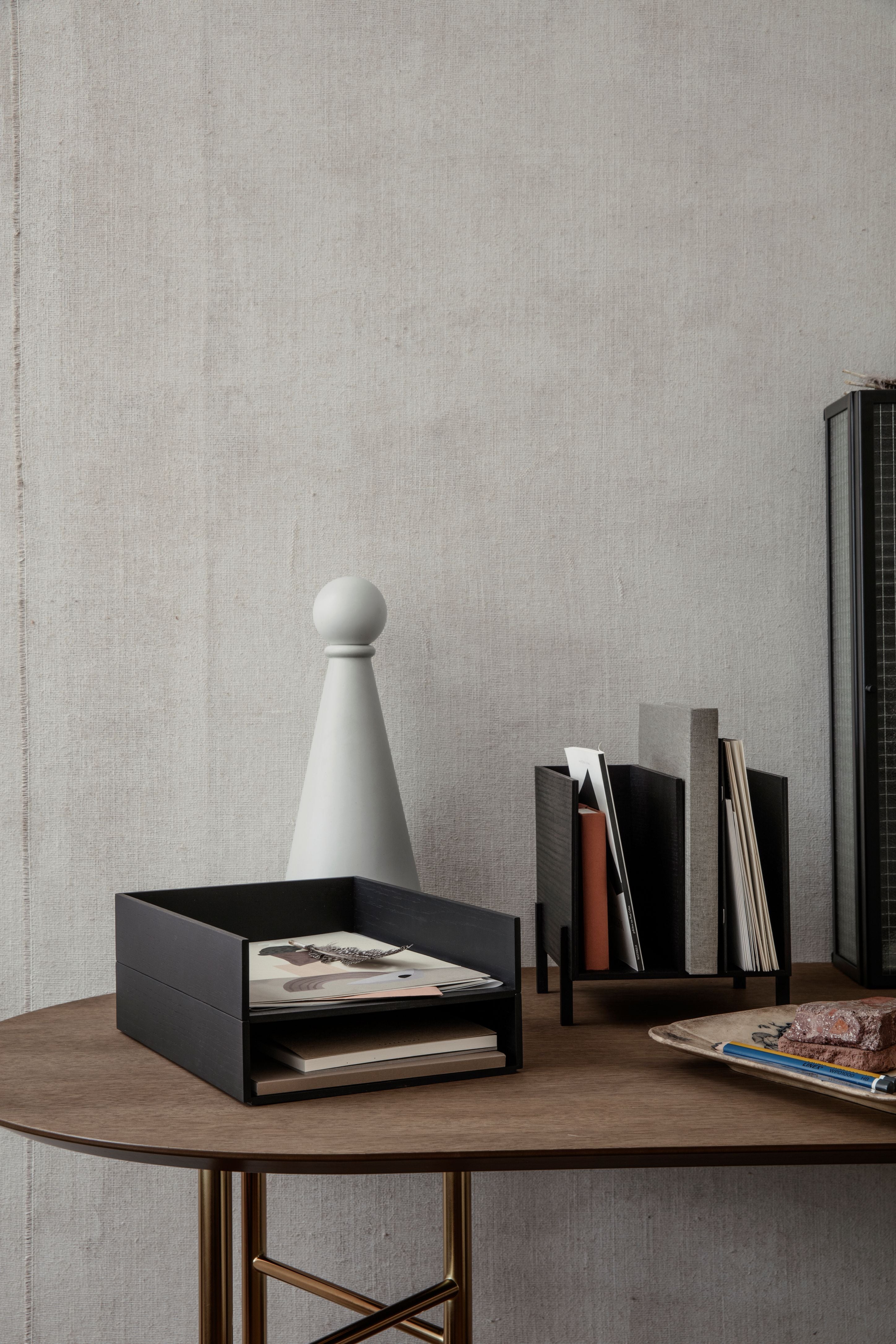 Sorgen Sie mit dieser eleganten Dokumentenablage für Ordnung auf Ihrem Schreibtisch – ideal für A4-Papier, Notizbücher und Zeitschriften. Gefertigt aus schwarz gebeiztem Eschenholzfurnier verleiht sie Ihrem Arbeitsplatz einen natürlichen Akzent und zeitlosen Stil. Dank ihrer minimalistischen Form passt sie perfekt in jedes Bürodesign – ob privat oder professionell.