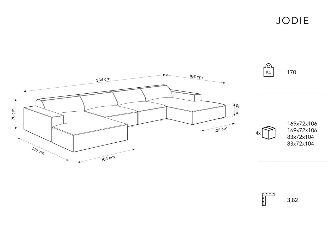 Jodie Panorama Sofa ist eine elegante und funktionale Couch, die perfekt in verschiedene Innenräume passt. Sie besteht aus hochwertigem Samt, der angenehm im Griff und leicht zu reinigen ist.