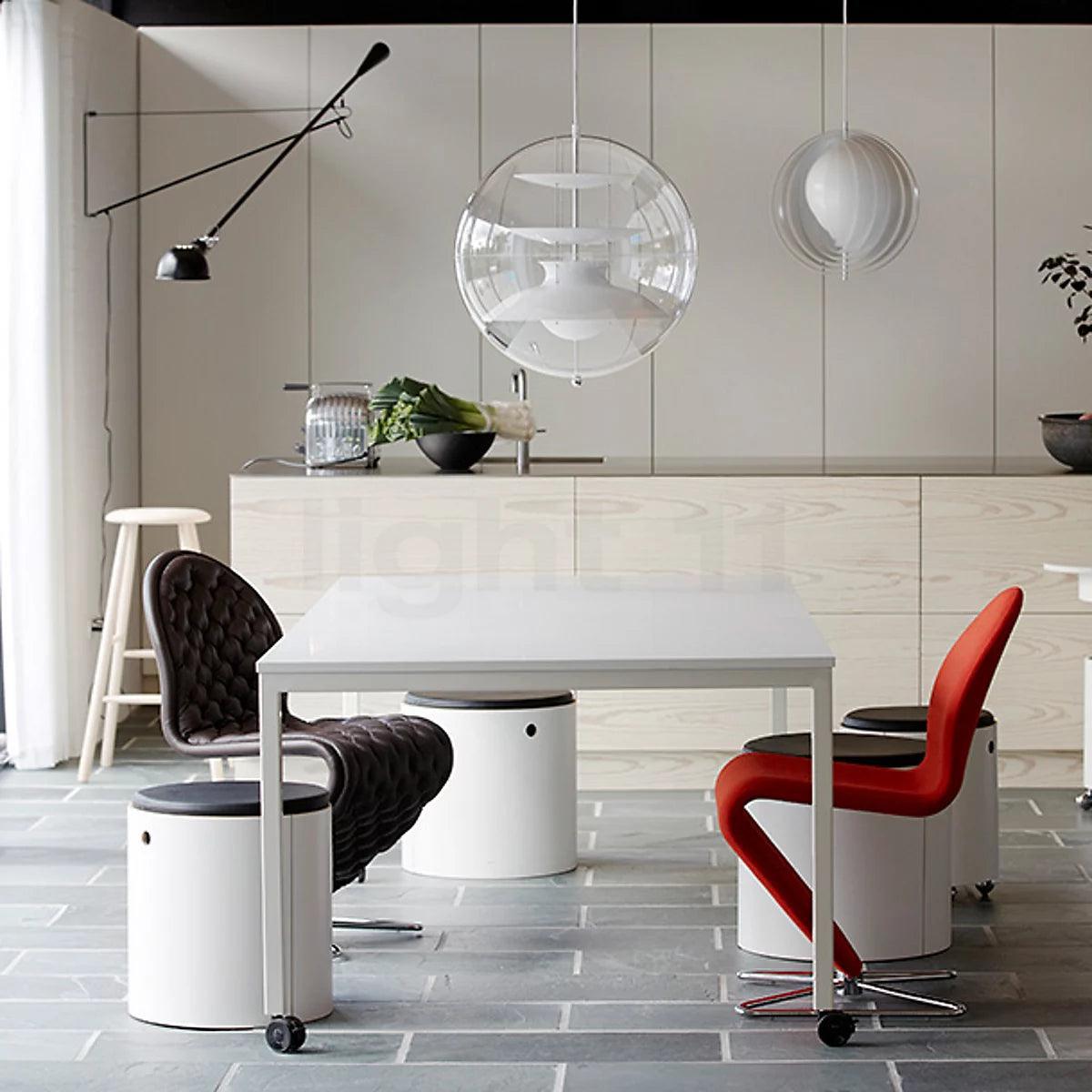 Trotz ihres minimalistischen Aussehens hat die weiße Lampe Acrylkugel ein charakteristisches Merkmal, das für die meisten Designs von Panton typisch ist - einen kleinen, subtil platzierten roten Fleck, der nur von unten am Pendel sichtbar ist. Dieser kleine zusätzliche Farbtupfer verleiht ihr ein elegantes und klassisches Aussehen, das sie zu jedem Einrichtungsstil passend macht. Die Kugellampe kann als einzelner Lichtpunkt oder in Gruppen verwendet werden, um außergewöhnliche und interessante Kompositionen zu schaffen, die dem Raum einen originellen Stil und Charme verleihen.