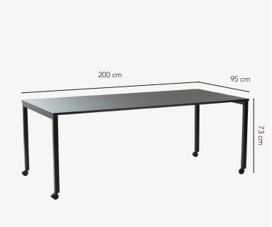 Material: Rahmen aus einem pulverbezogenen Stahlquadratrohr, MDF -Arbeitsplatte mit Laminat-, geschlossenen Tente -Rädern bedeckt