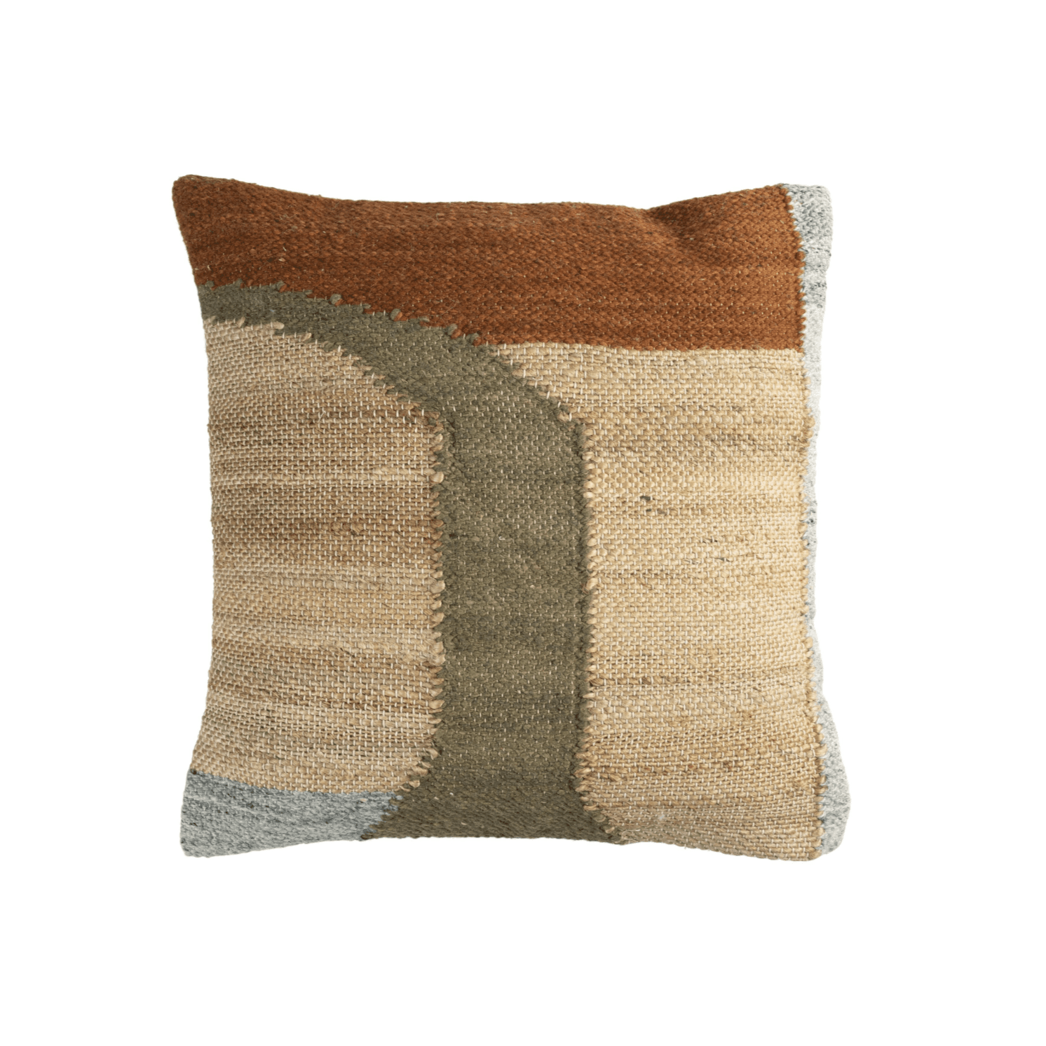 Kissen Pavillon besteht aus Hand aus Jute und Wolle. Es ist nicht nur als dekoratives Kissen, sondern auch als Teppich erhältlich. Mit seinen verschiedenen Formen und Versionen können Sie jedem Innenraum entsprechen, und organische Muster und natürliche Farben verleihen ihm einen einzigartigen Charakter.
