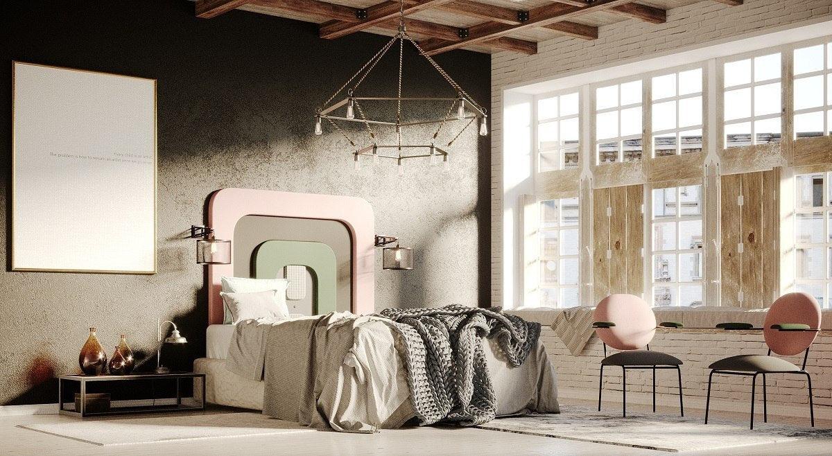 Das Kopfteil der Plum -Kollektion ist ein ungewöhnliches Projekt von Kataryna Jasyk, das sich mit seiner Komposition und seinem Block auf den postmodernen Stil bezieht Memphis. Die Kombination aus kräftigen Farben und geometrischen Formen erzeugt ein Augenfassungsdesign. Das Ganze ist weich, Samtstoff, was Subtilität und Eleganz hinzufügt.