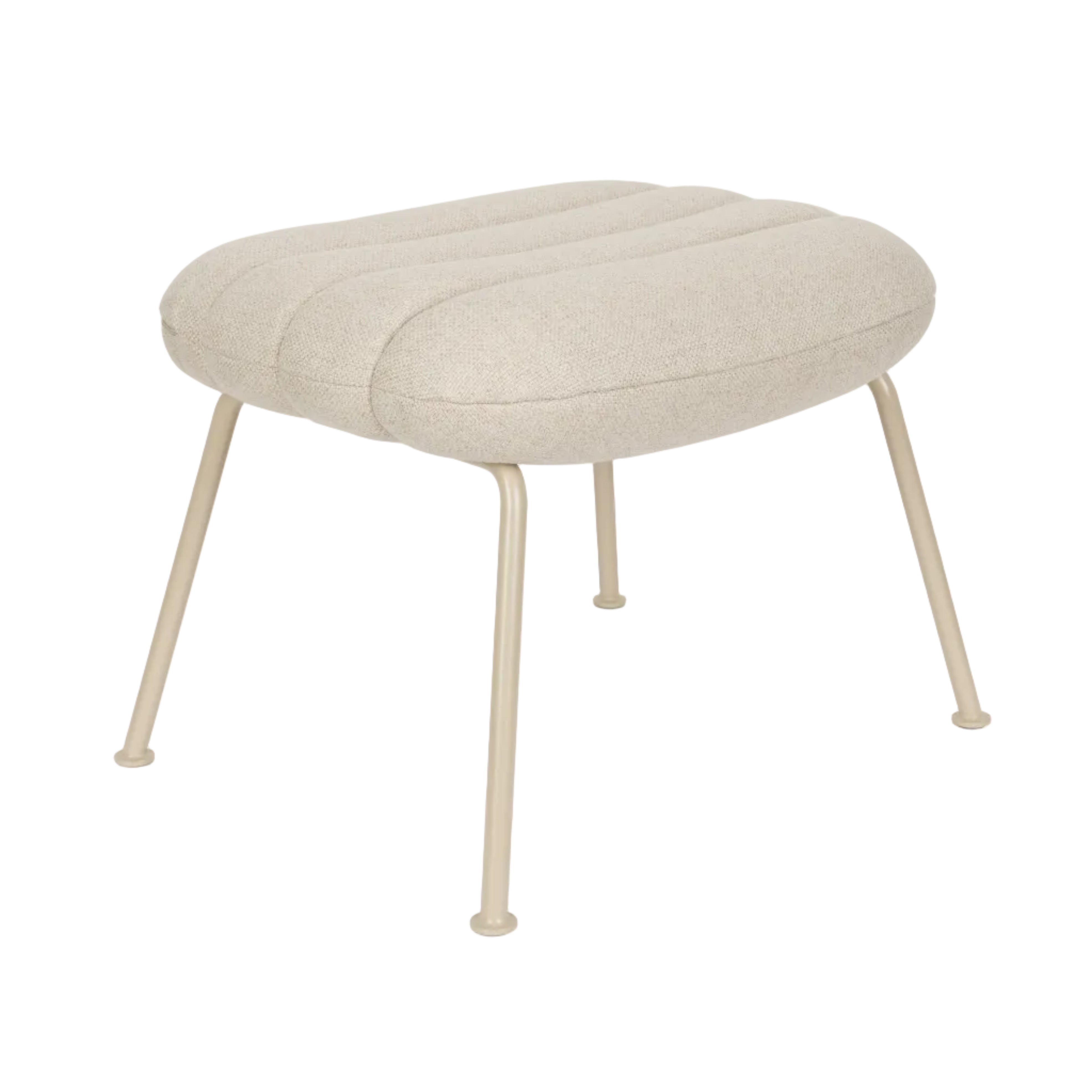 Fußhocker Verte mit einem eleganten, beige gepolsterten Sitz und metallischen Beinen ist die perfekte Ergänzung für jedes Interieur. Dank seiner Schlichtheit und zeitlosen Ästhetik fügt er sich hervorragend in verschiedene Einrichtungsstile ein, von modern bis klassisch.
