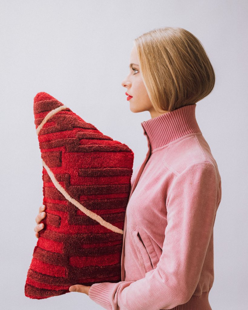 Kissen Maya zeichnet sich durch seine weiche, geschwungene Form und harmonische Farbkombination aus. Ihr Muster und ihre Konstruktion sind so gestaltet, dass sie Aufmerksamkeit erregen und einen künstlerischen Akzent in den Raum bringen — das Kissen ist ein dekorativer Punkt, der Komfort und Ästhetik vereint.