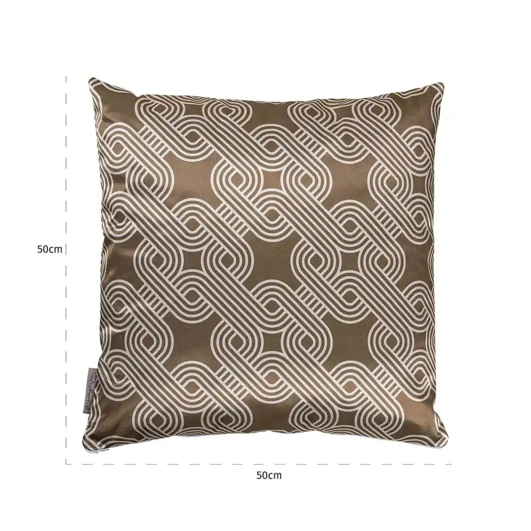 Dekokissen Marsha in Braun ist ein elegantes Accessoire, das den Charakter Ihres Interieurs unterstreicht und ihm ein luxuriöses Aussehen verleiht. Ihre satinierte Oberfläche und das geometrische Muster in Form einer Kette sorgen dafür, dass sie sowohl in modernen als auch in klassischen Arrangements hervorragend zur Geltung kommt. Dies ist ein stilvolles Element, das Ihrem Sofa, Sessel oder Bett einen besonderen Charme verleiht.