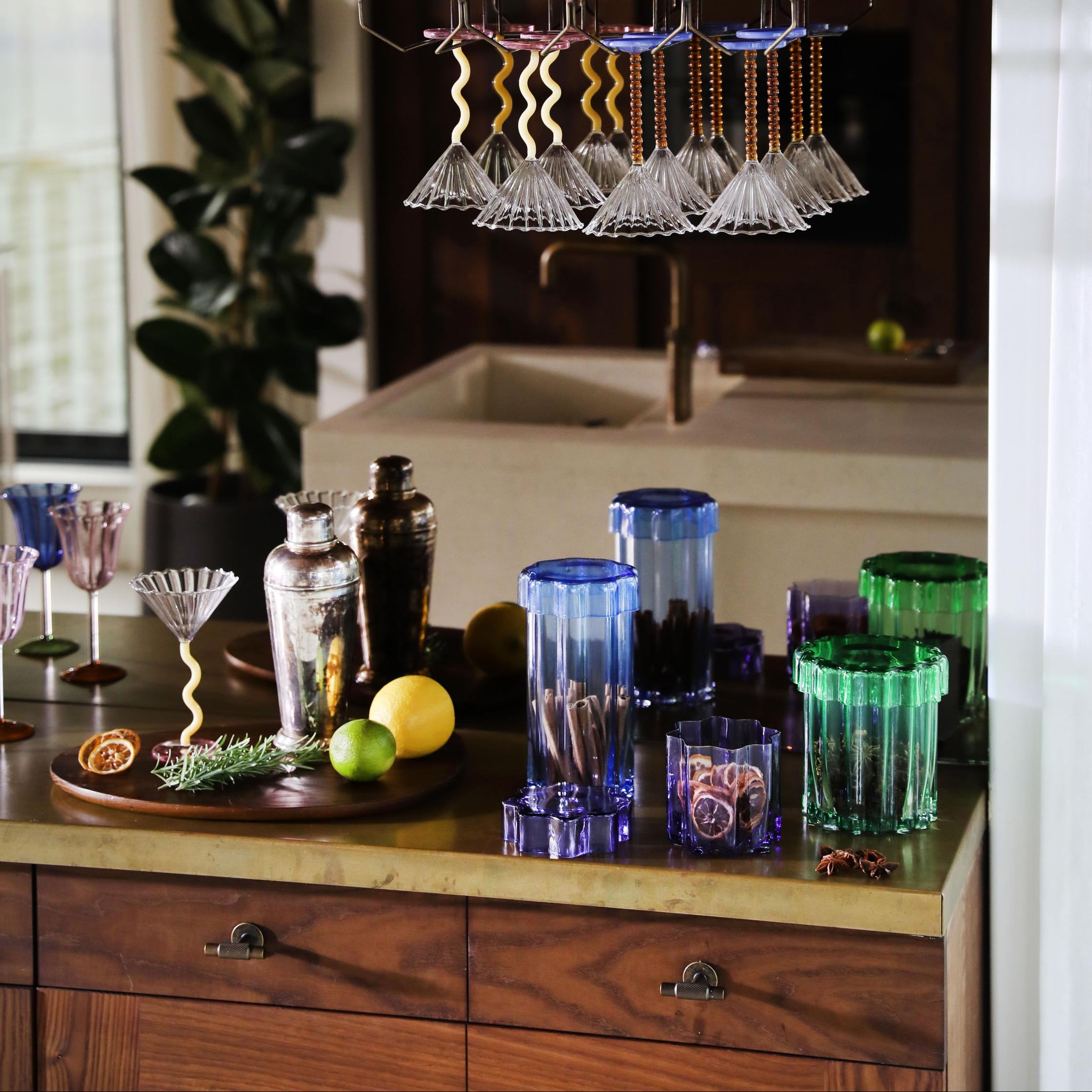 Der Behälter Astral ist eine stilvolle Möglichkeit, Ihre Lieblingsgegenstände im Zuhause aufzubewahren. Die Kombination aus grünem Glas und geometrischer Form verleiht dem Behälter eine elegante und moderne Ausstrahlung und macht ihn gleichzeitig zu einem praktischen und dekorativen Element des Interieurs.