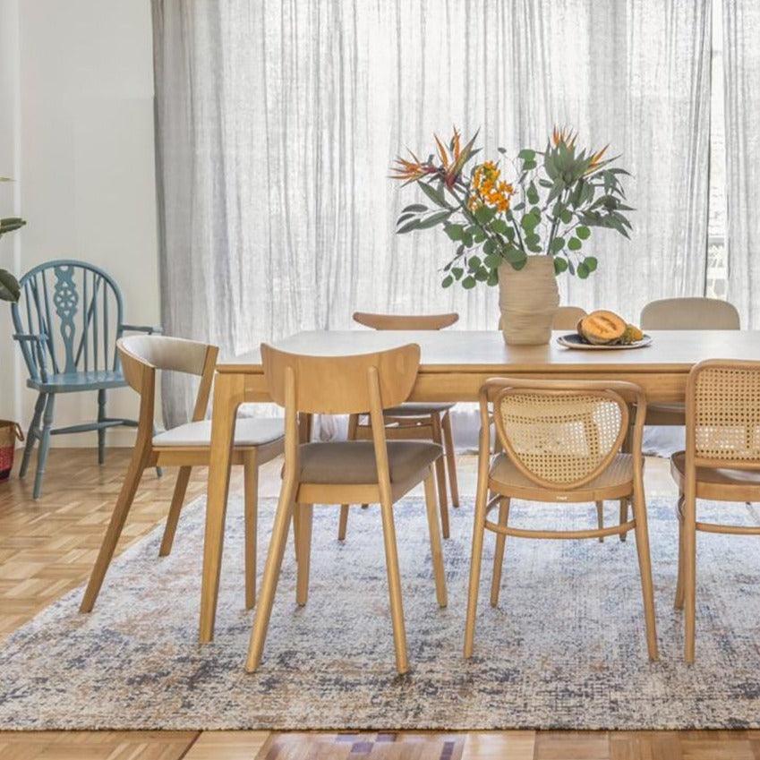 Helda beige Stuhl von einer Holzbasis