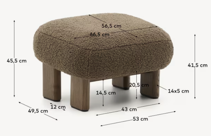NEMA brauner Bouclé-Pouf mit dunkler Eschenbasis