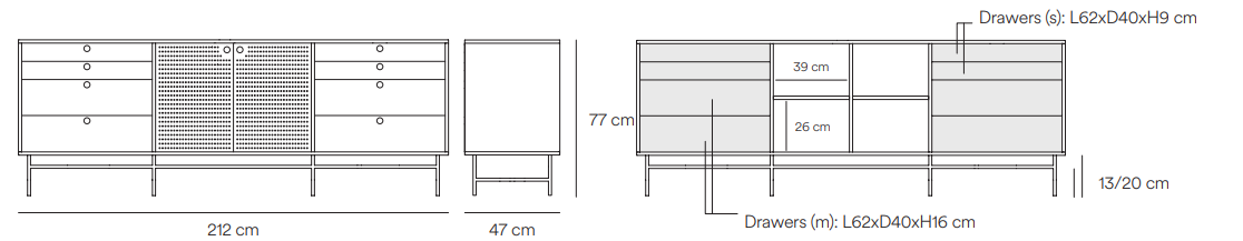 Perforierte, metallene Türen verleihen ihr einen einzigartigen Charakter und Persönlichkeit. Die zeitlose Form sorgt dafür, dass Punto sowohl als Küchenkommode als auch als Esszimmerkommode oder für das Wohnzimmer verwendet werden kann. Die elegante, dunkelgrüne Farbe unterstreicht den Loft-Charakter des Schranks.