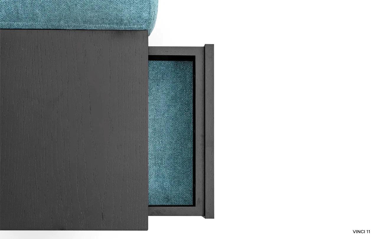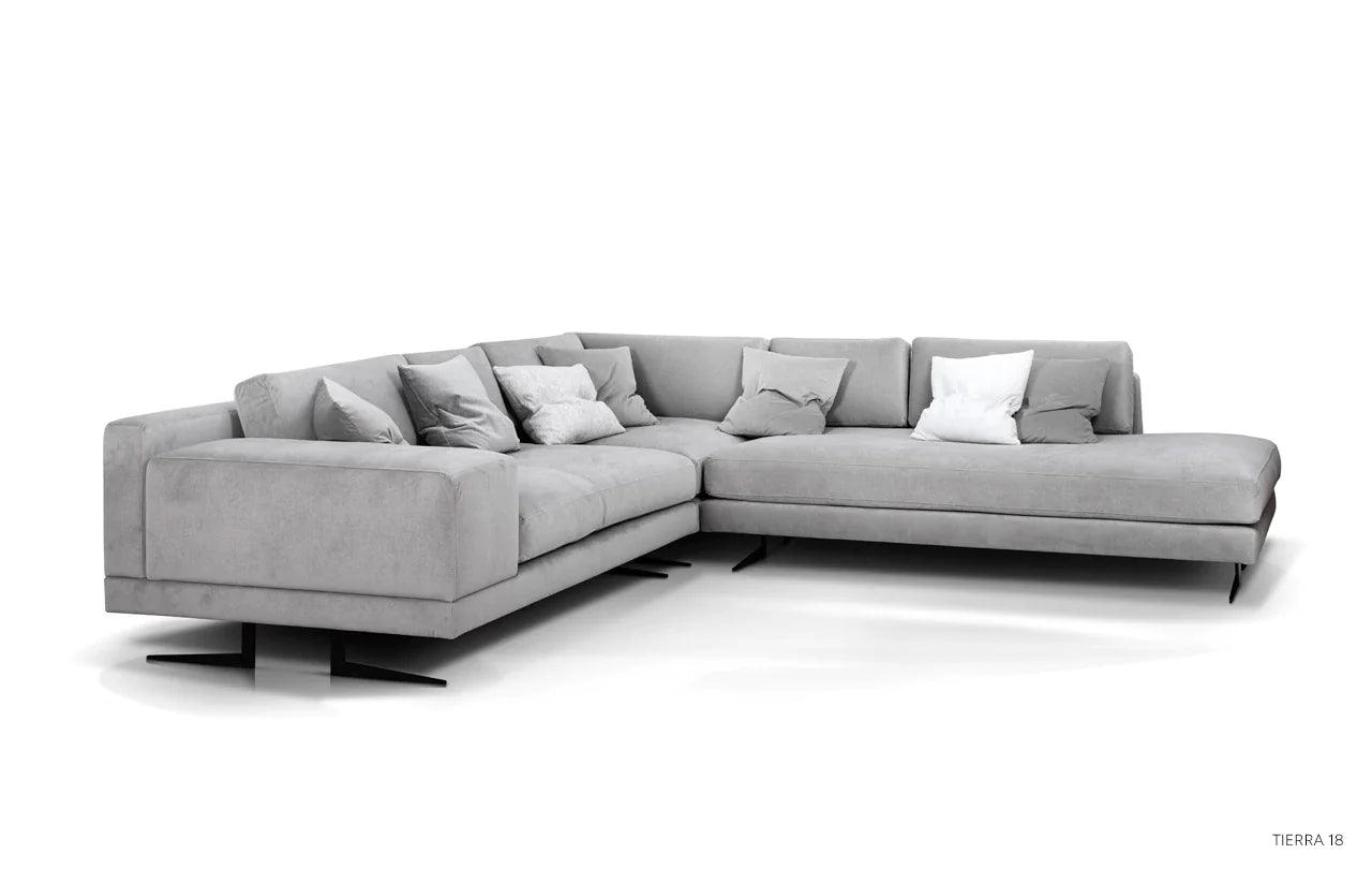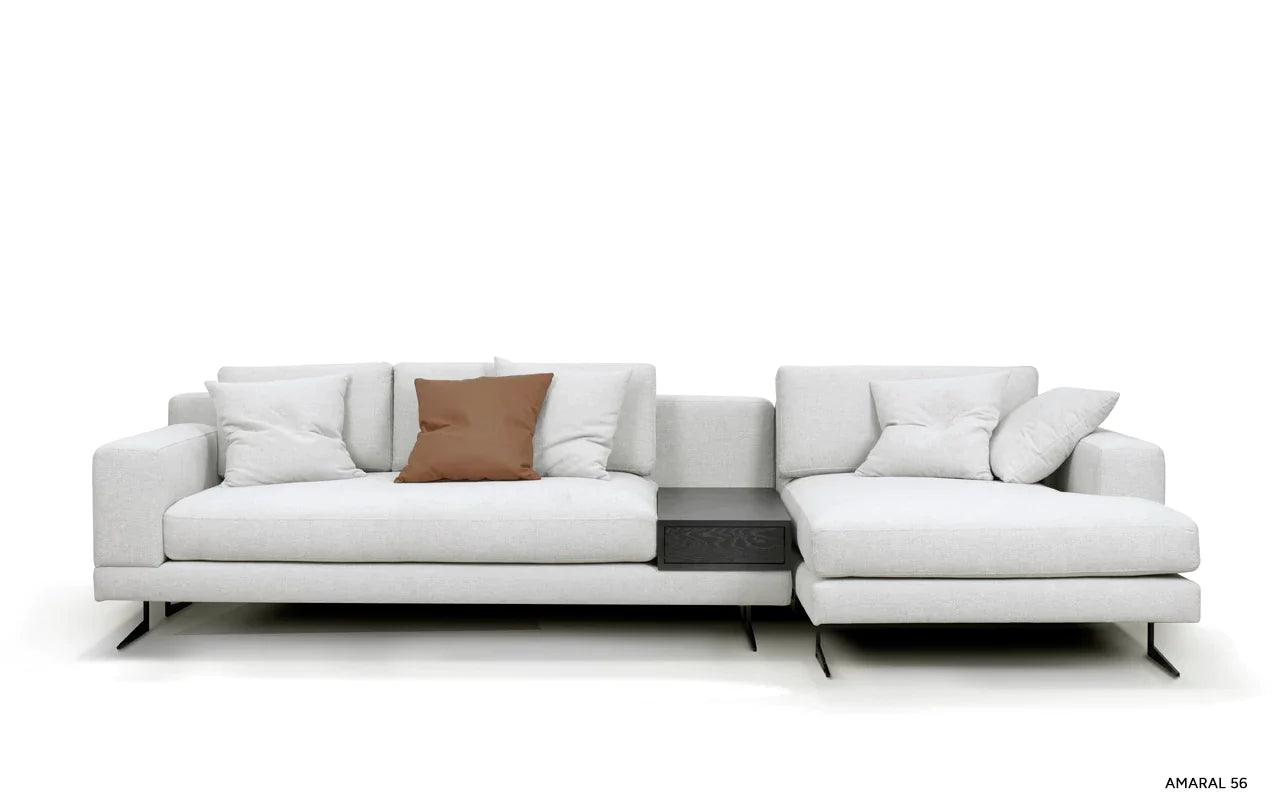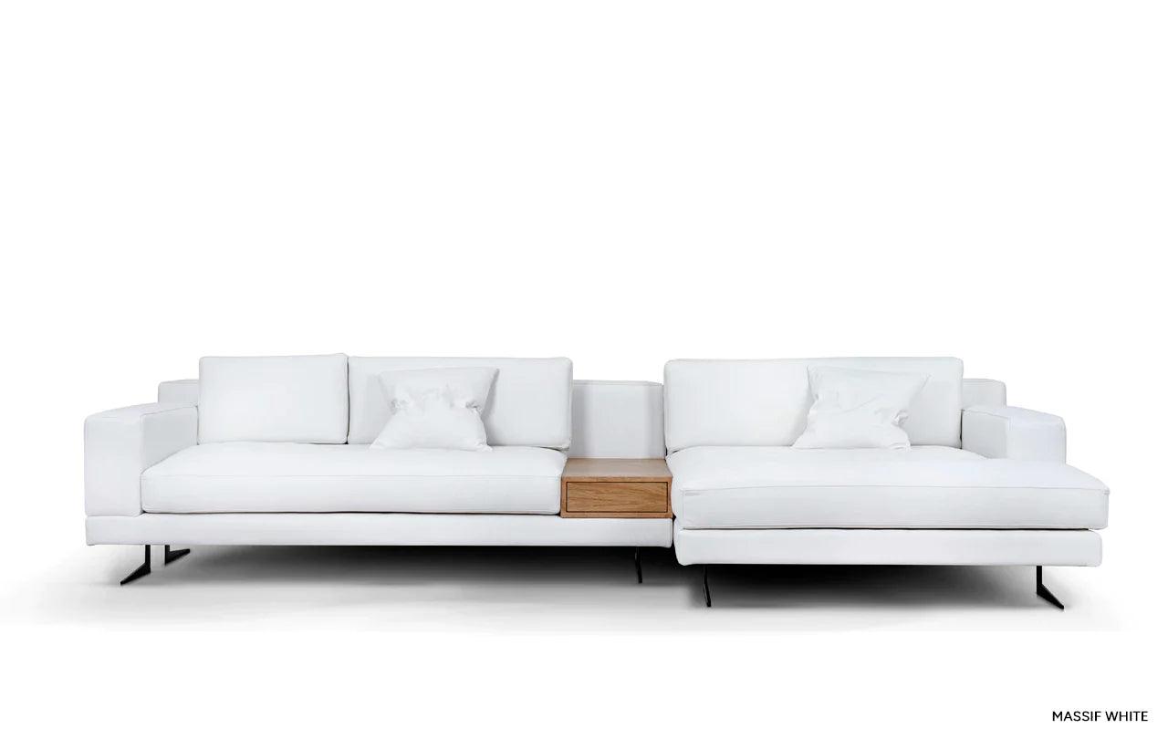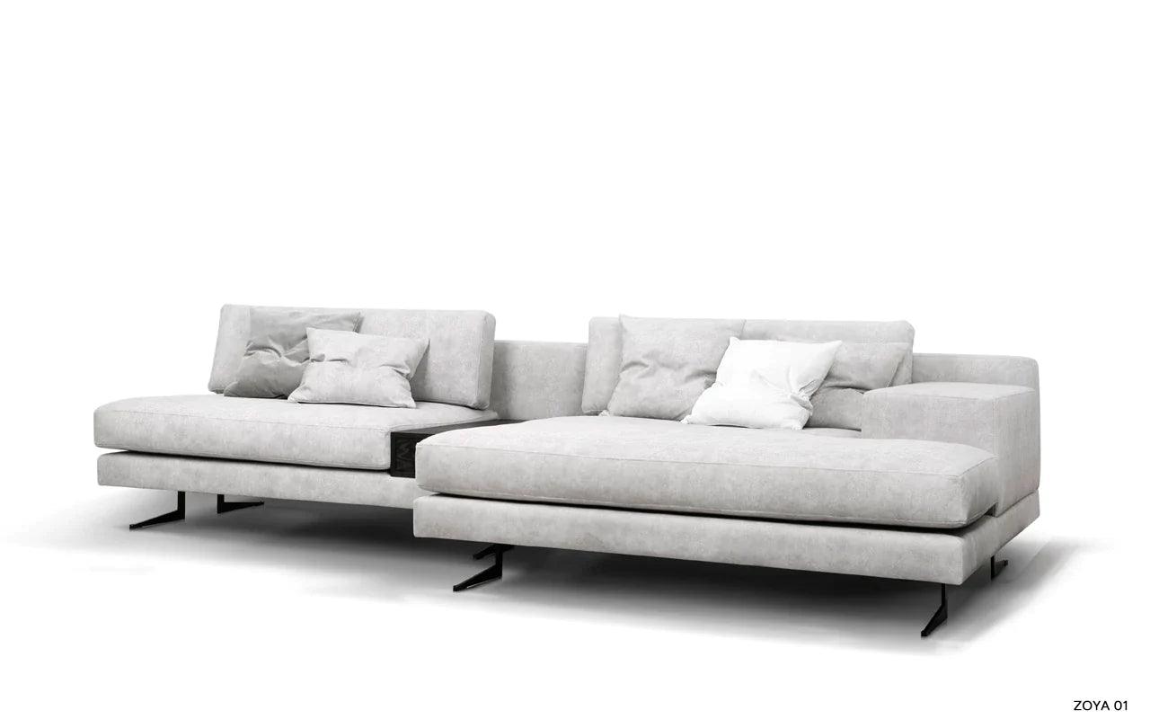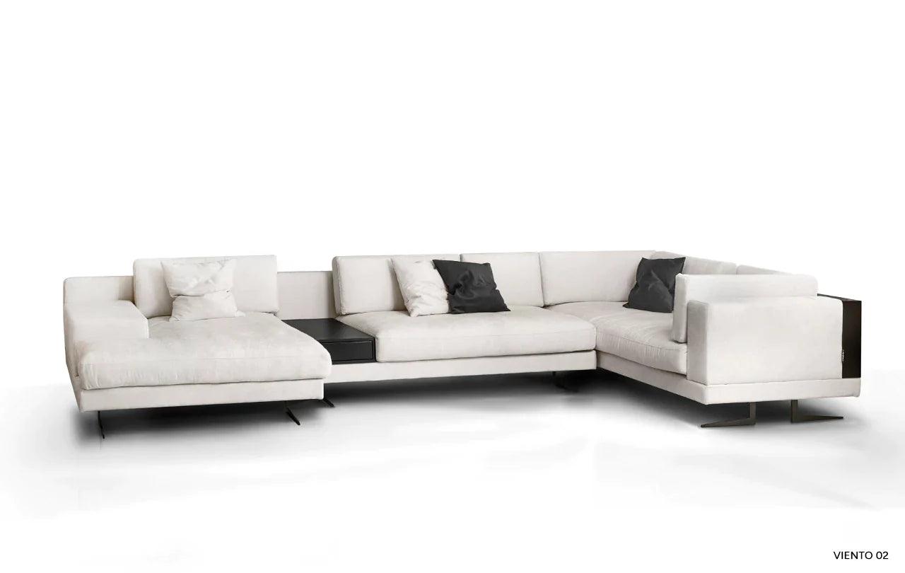 Eines der besonderen Elemente des Designs ist die Möglichkeit, eines der Kissen der Eckcouch in einen praktischen Tisch zu verwandeln. Diese Funktionalität ermöglicht es, einen Platz für eine Tasse Ihres Lieblingsgetränks oder eine Nachttischlampe zu schaffen und verleiht der Eckcouch eine zusätzliche Dimension der Nutzbarkeit.