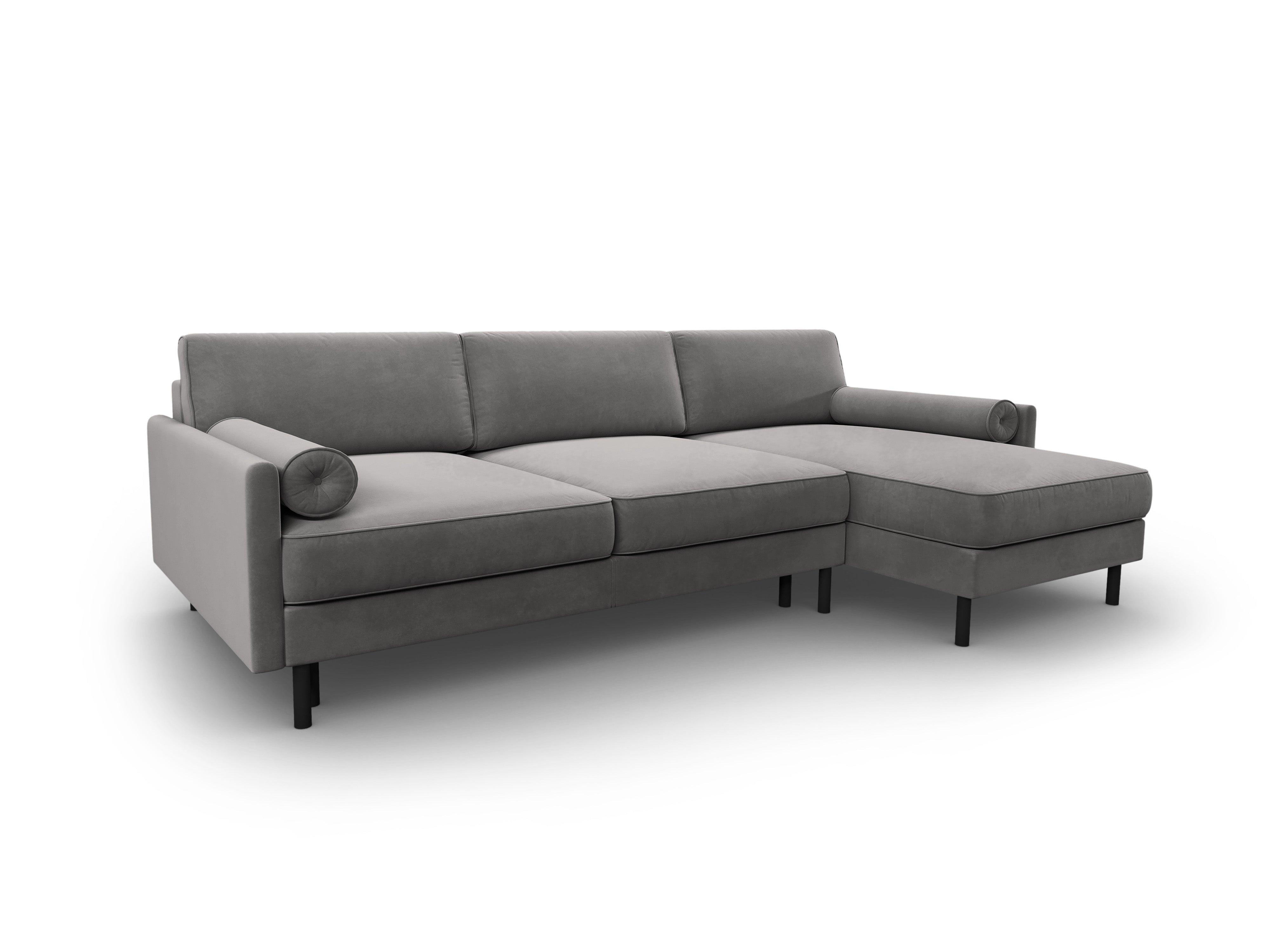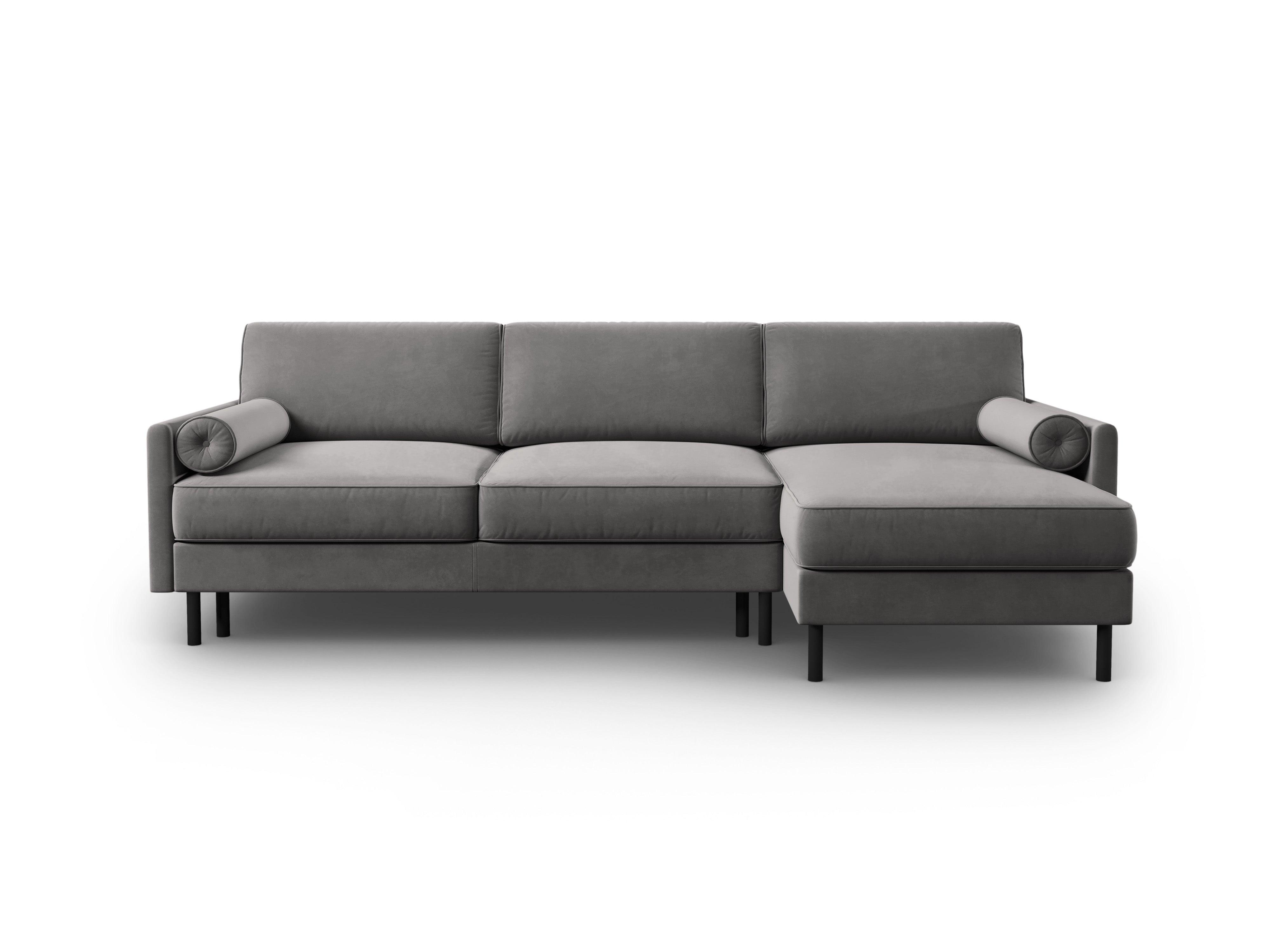 Ecksofa Scott ist ein ausziehbares Sofa für fünf Personen, ideal für Familien und Personen, die ein bequemes und stilvolles Möbelstück für ihr Zuhause suchen. Das Ecksofa ist in eleganten Farben erhältlich und mit schwarzen Metallbeinen ausgestattet, die ihm einen modernen Charakter verleihen. Kunden haben die Möglichkeit, die Seite des Ausziehens des Sofas zu wählen, sodass sie es an ihre Bedürfnisse und die Anordnung im Raum anpassen können.