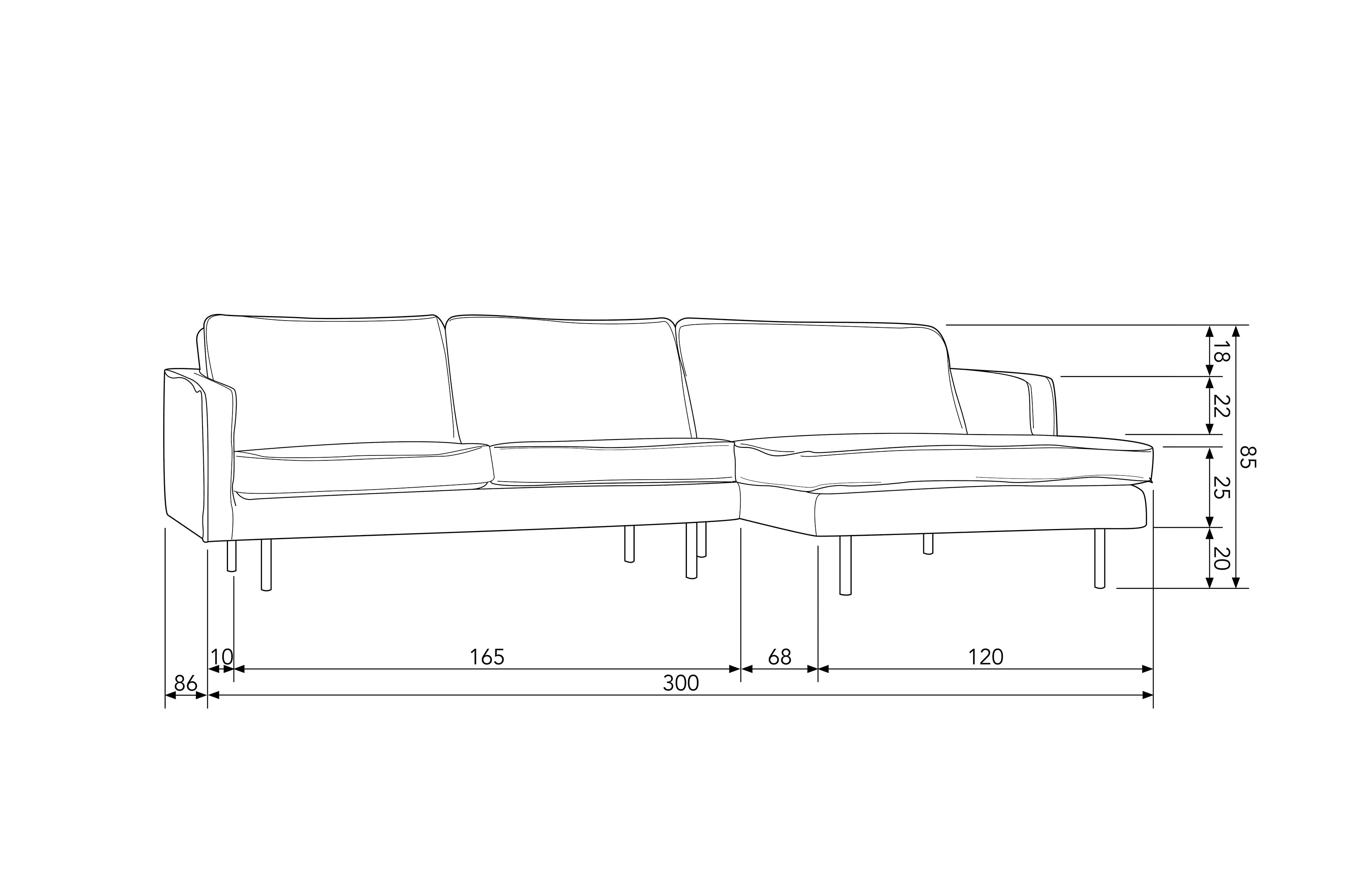 Ein charakteristisches Merkmal der Ecksofa Rodeo ist der schlanke Rahmen, der ihm ein subtiles Aussehen im Raum verleiht. Denken Sie, es könnte nicht besser werden? Die lockeren Kissen fügen Komfort hinzu und machen dieses Möbelstück noch gemütlicher. Es ist ein Möbelstück, das nicht nur einen bequemen Platz zum Sitzen bietet, sondern auch eine stilvolle Dekoration für das Interieur darstellt. Die Beine der Ecksofa sind aus schwarzem Metall gefertigt, das Eleganz und Stabilität in die Konstruktion bringt und eine harmonische Verbindung mit dem Rest des Möbelstücks schafft.